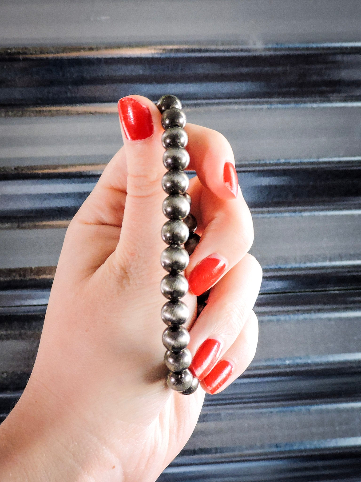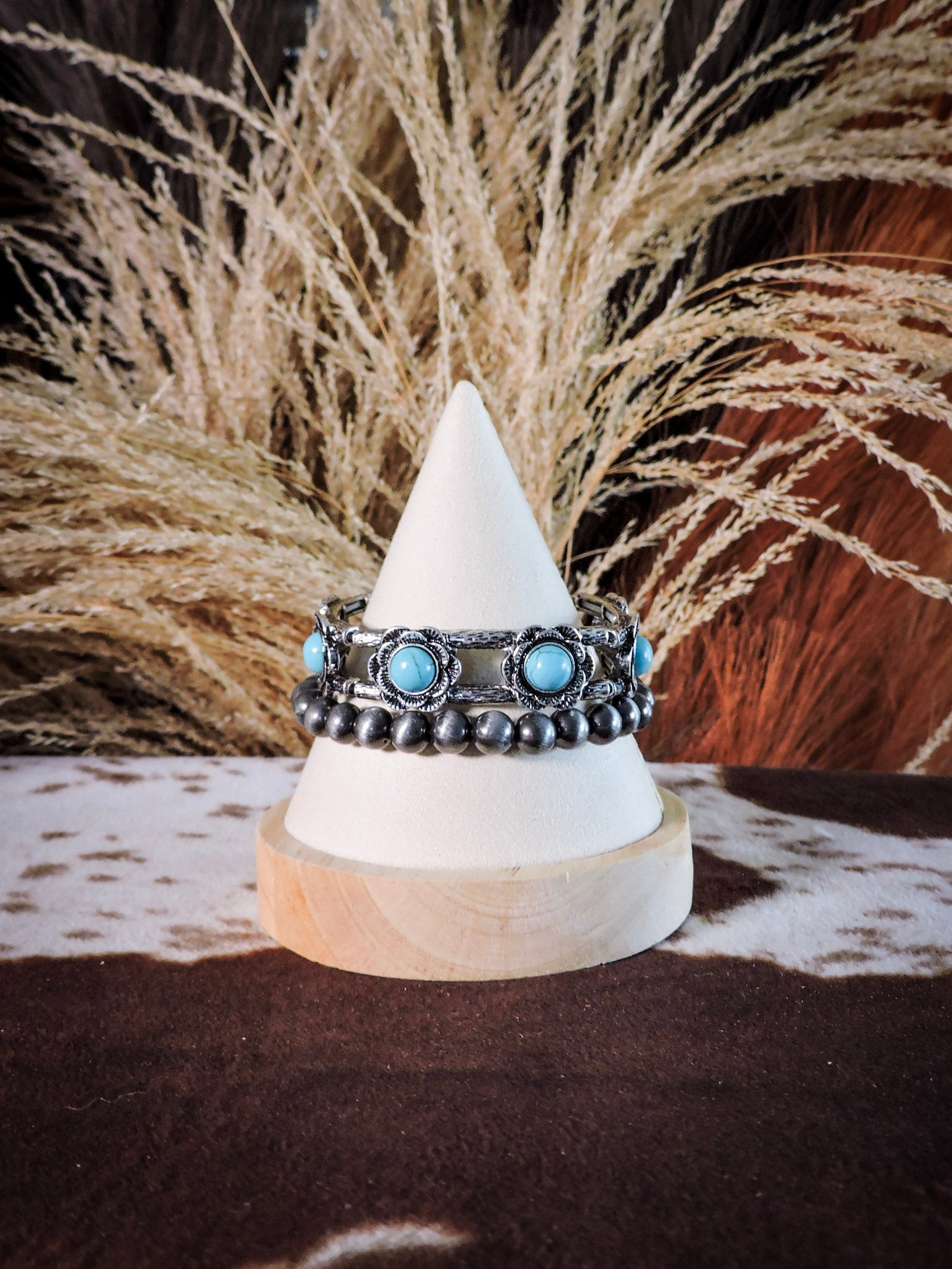 Faux Navajo Pearl and Metal Stretch Bracelet Set