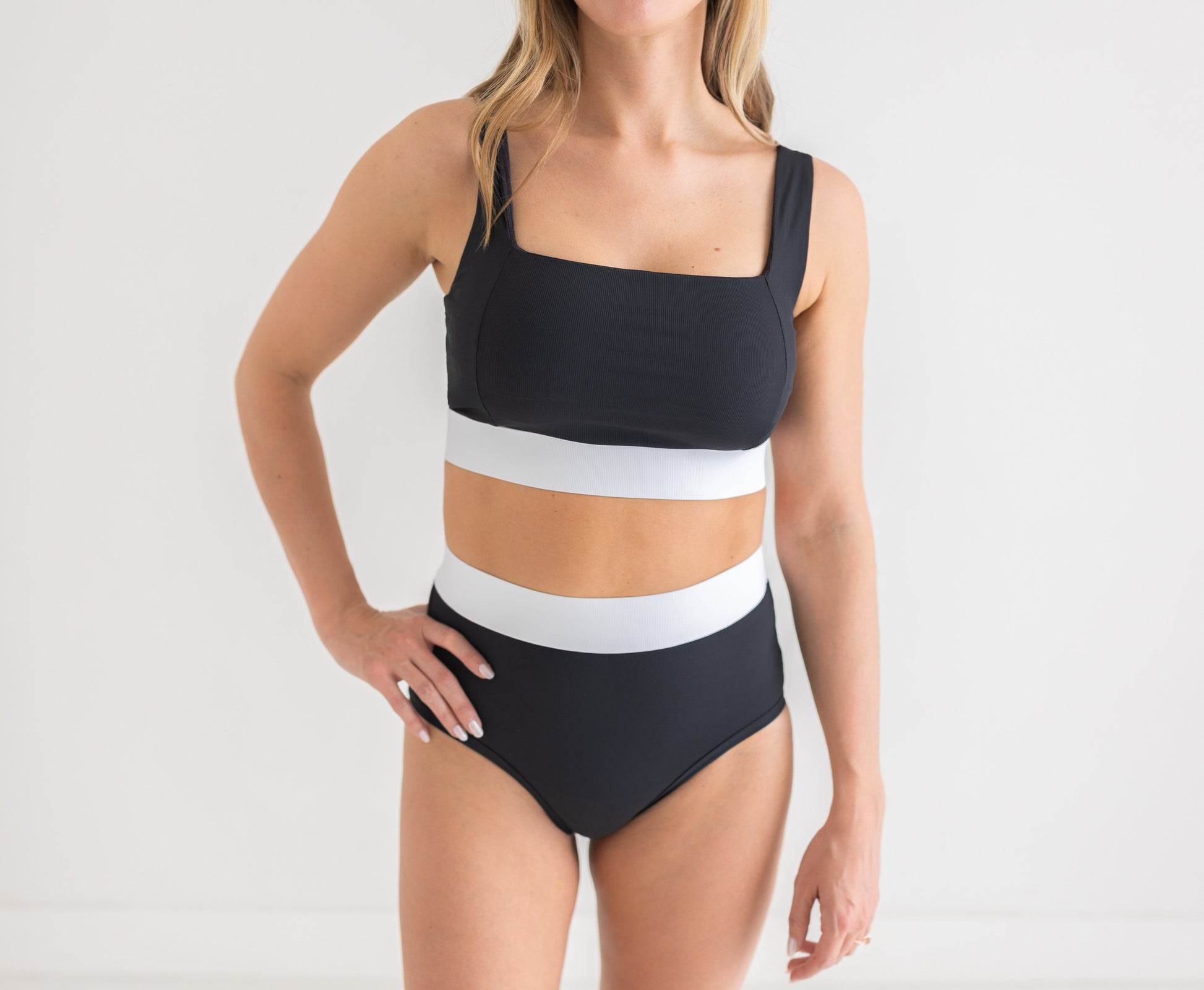 Our signature top is back in a new, black ribbed material! Gone are the days of unsupportive swimsuit tops! Our viral top is designed with an elastic band for enhanced support and thick, adjustable straps that extend up to 2 inches. It also features removable padding, is UPF 50+, and is double-lined, making it the perfect choice for you. Don’t miss your chance to grab this must-have suit!