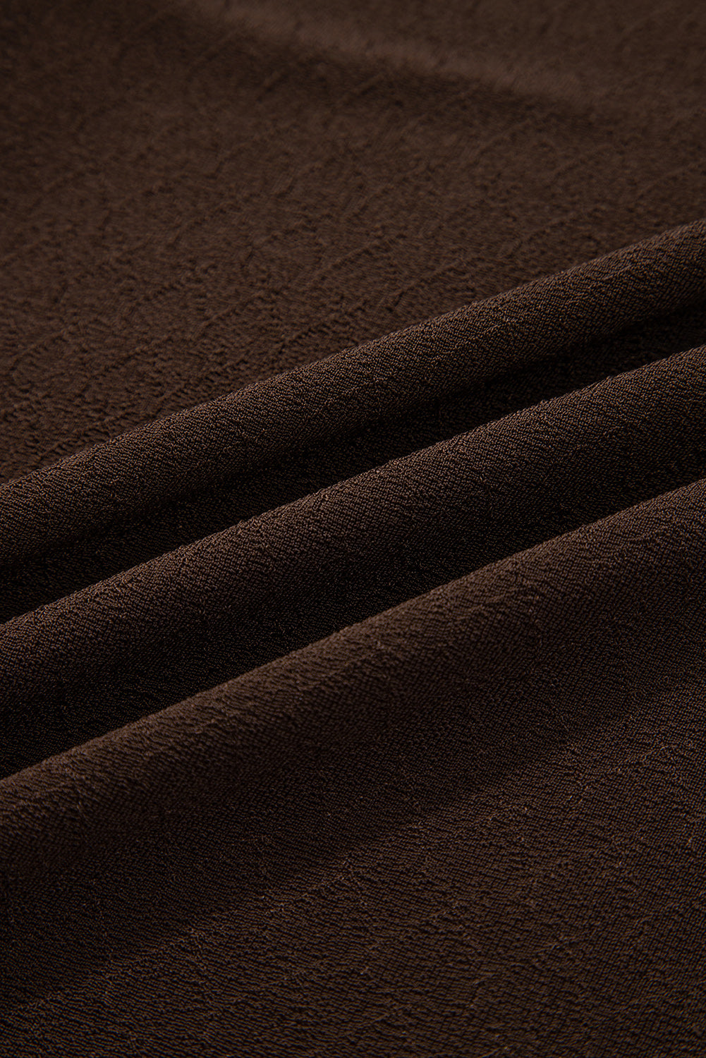 Cinnamon Lettuce Trim Raw Seam Patchwork Jacquard Long Sleeve Top