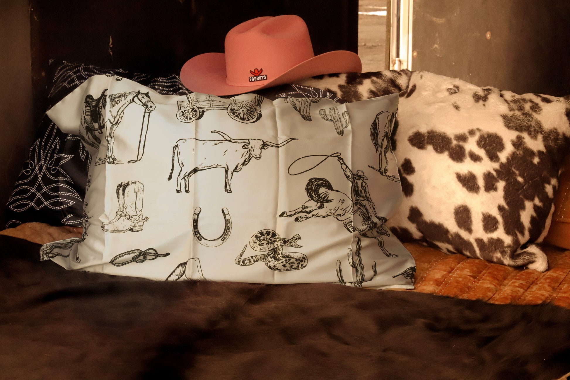Lasso up your heart with our Cowboy Satin Pillow Case! Made from soft, silky satin, this pillowcase features a whimsical cowboy candy heart design that will add a touch of charm to your bedroom. Perfect for a cozy night's sleep or a fun accent piece for your bedding. Yeehaw!