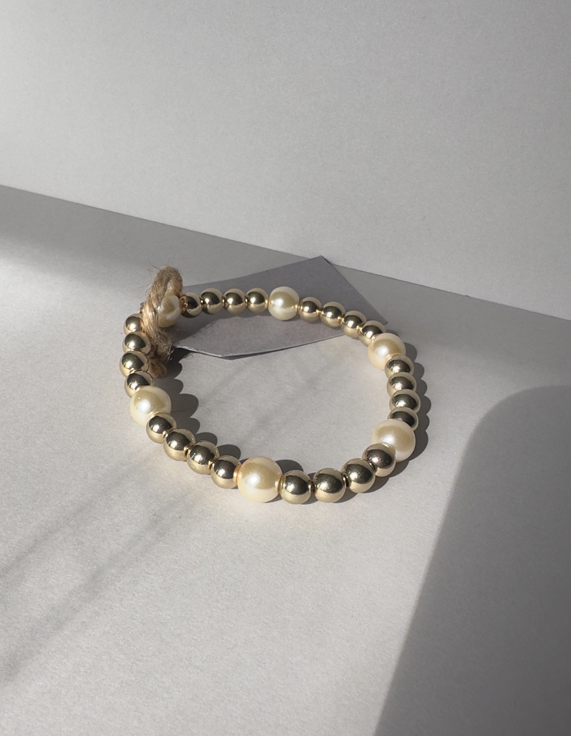 Handmade | Golden Glow | Gold & Pearl Beaded Bracelet