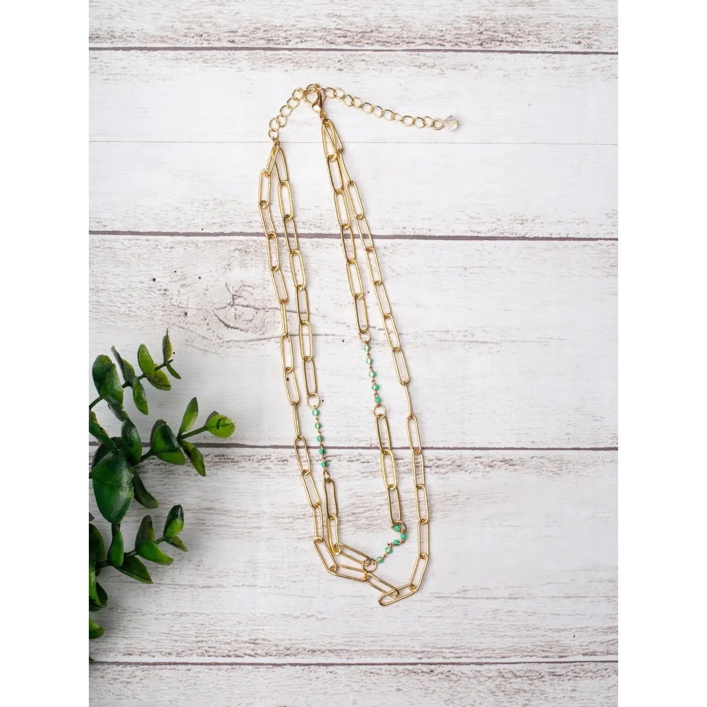 Don't Call Me Honey Turquoise Bead Gold Linked Chain Necklace