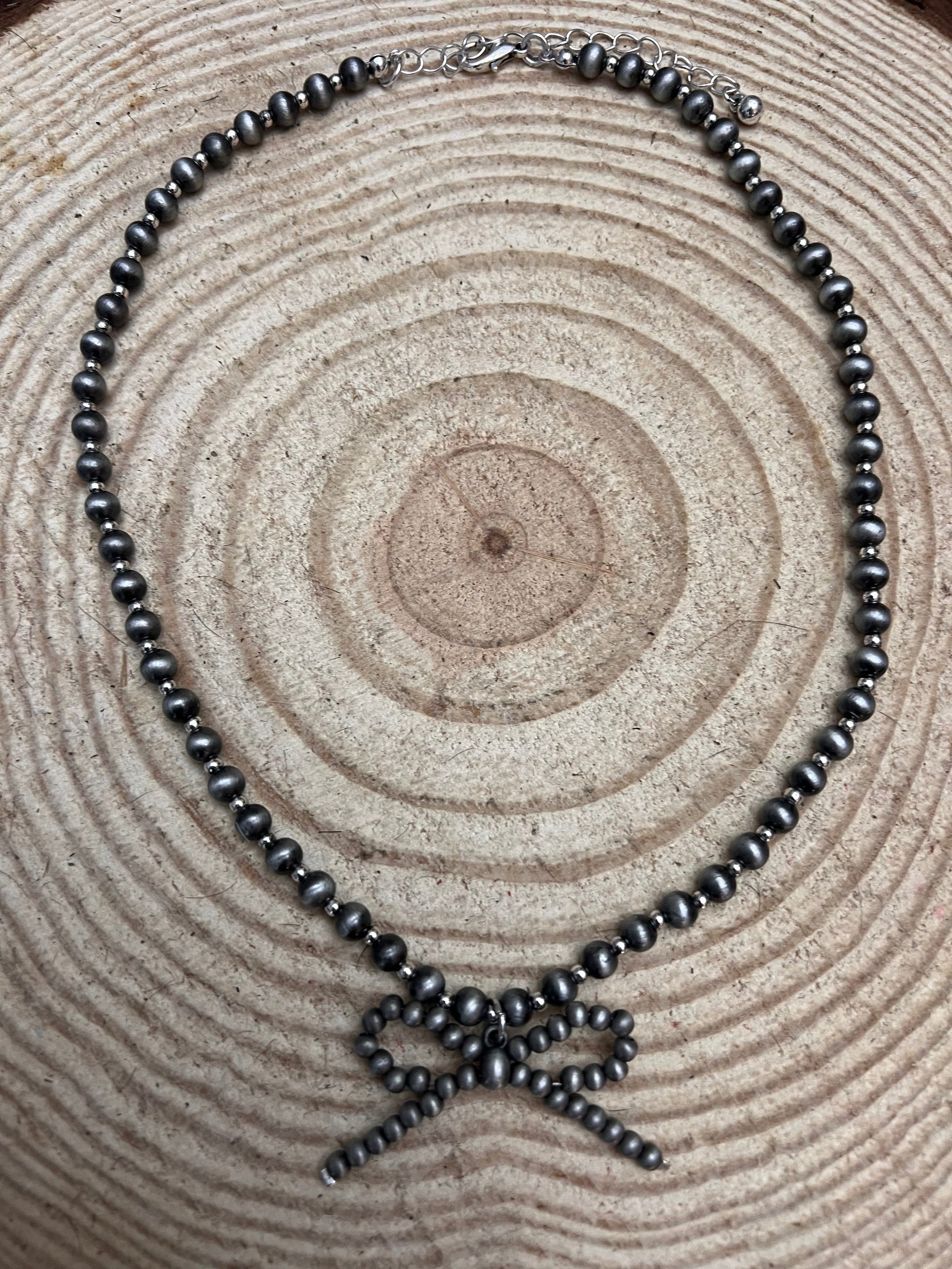 Faux Bow Necklace with Faux 5mm Pearls - 18 inch