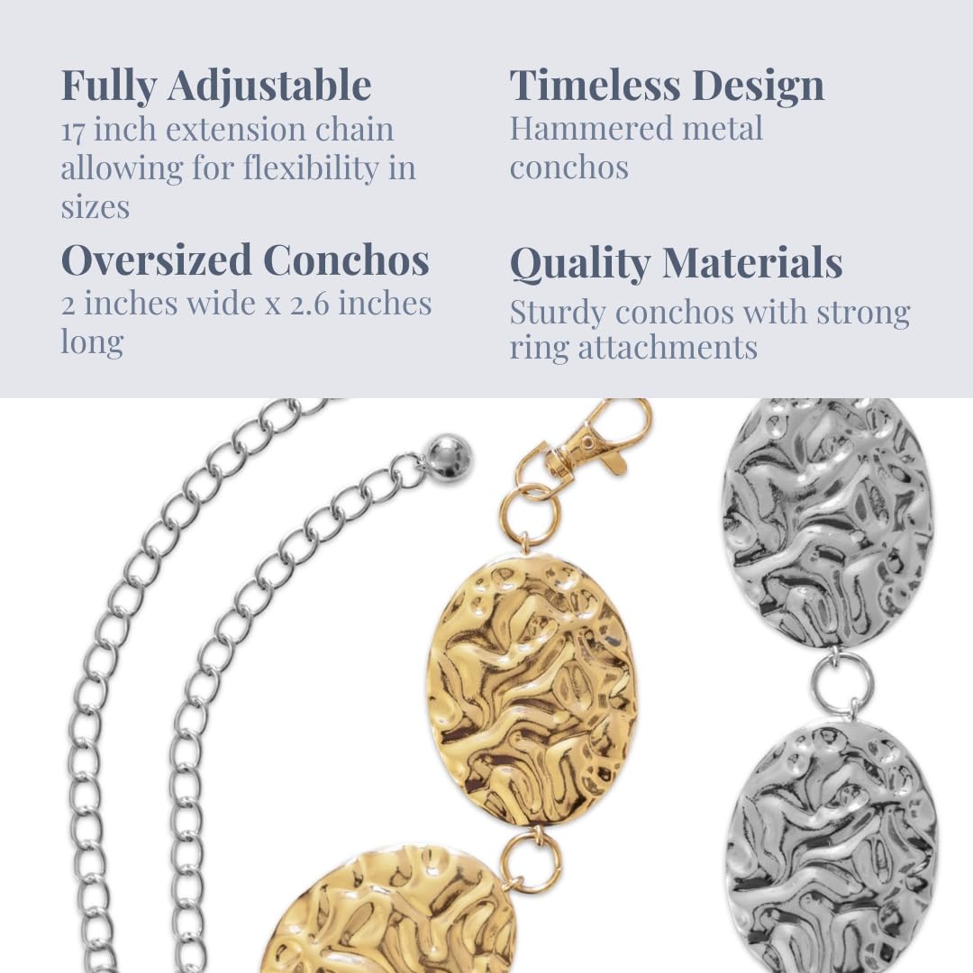 - Premium Hammered Metal Design: Crafted with durable metal and a textured hammered finish, each concho gleams with eye-catching vintage charm. Ideal for fans of western metal belts for woman or belt chains for women.