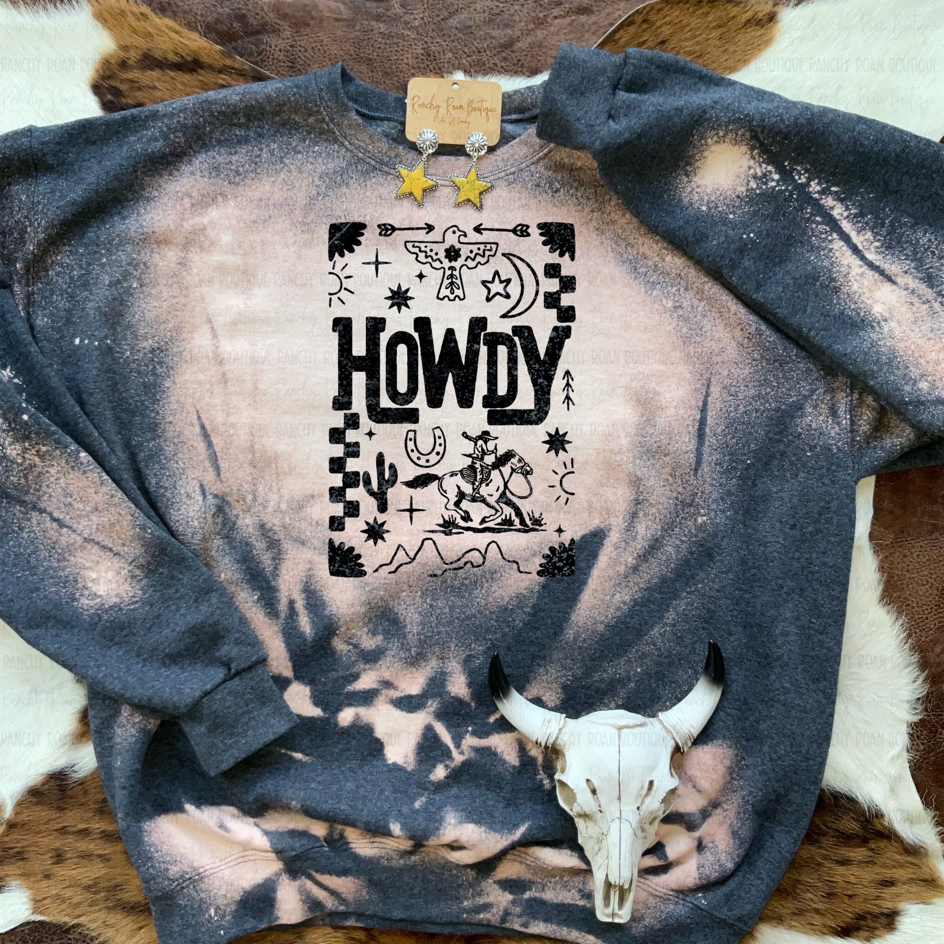 Howdy Western Graphic Sweatshirt Bleached Unisex Pullover