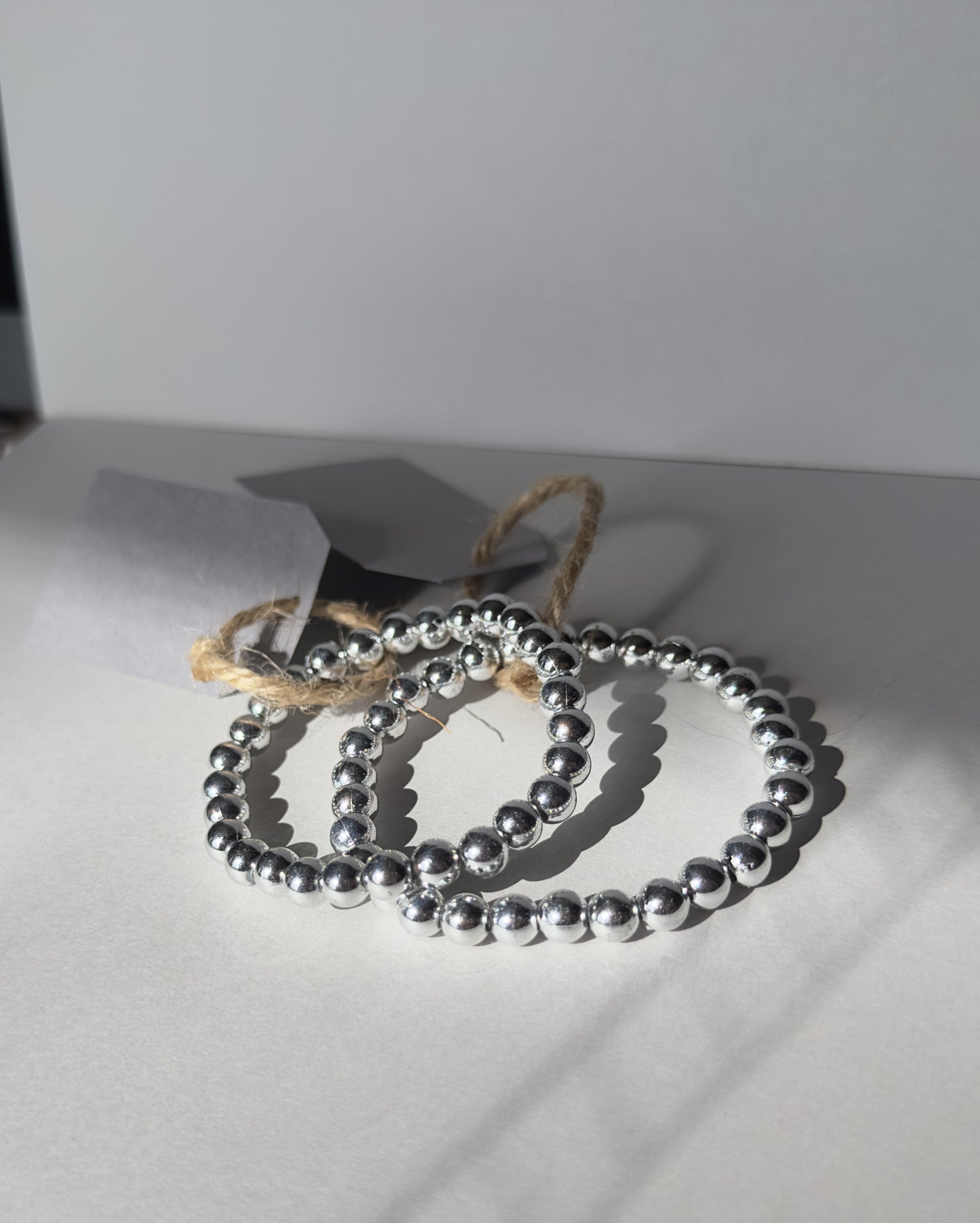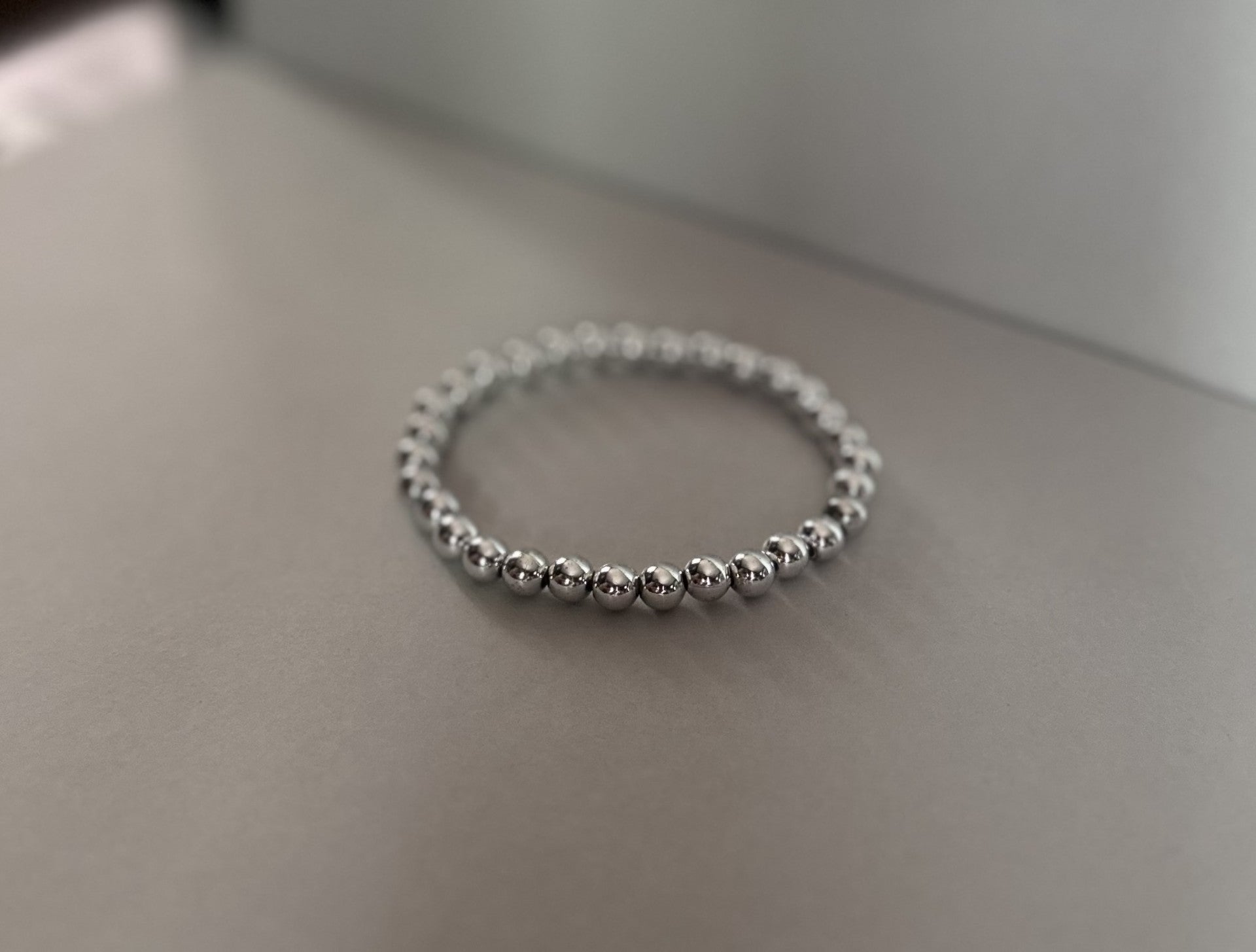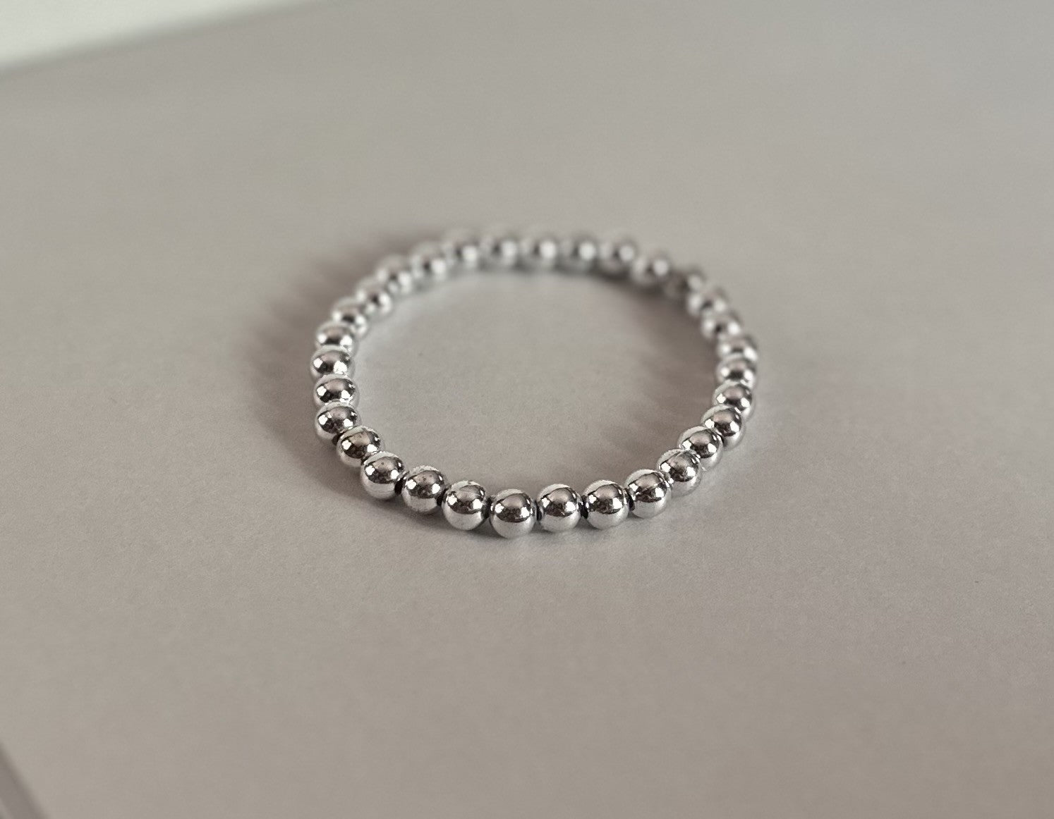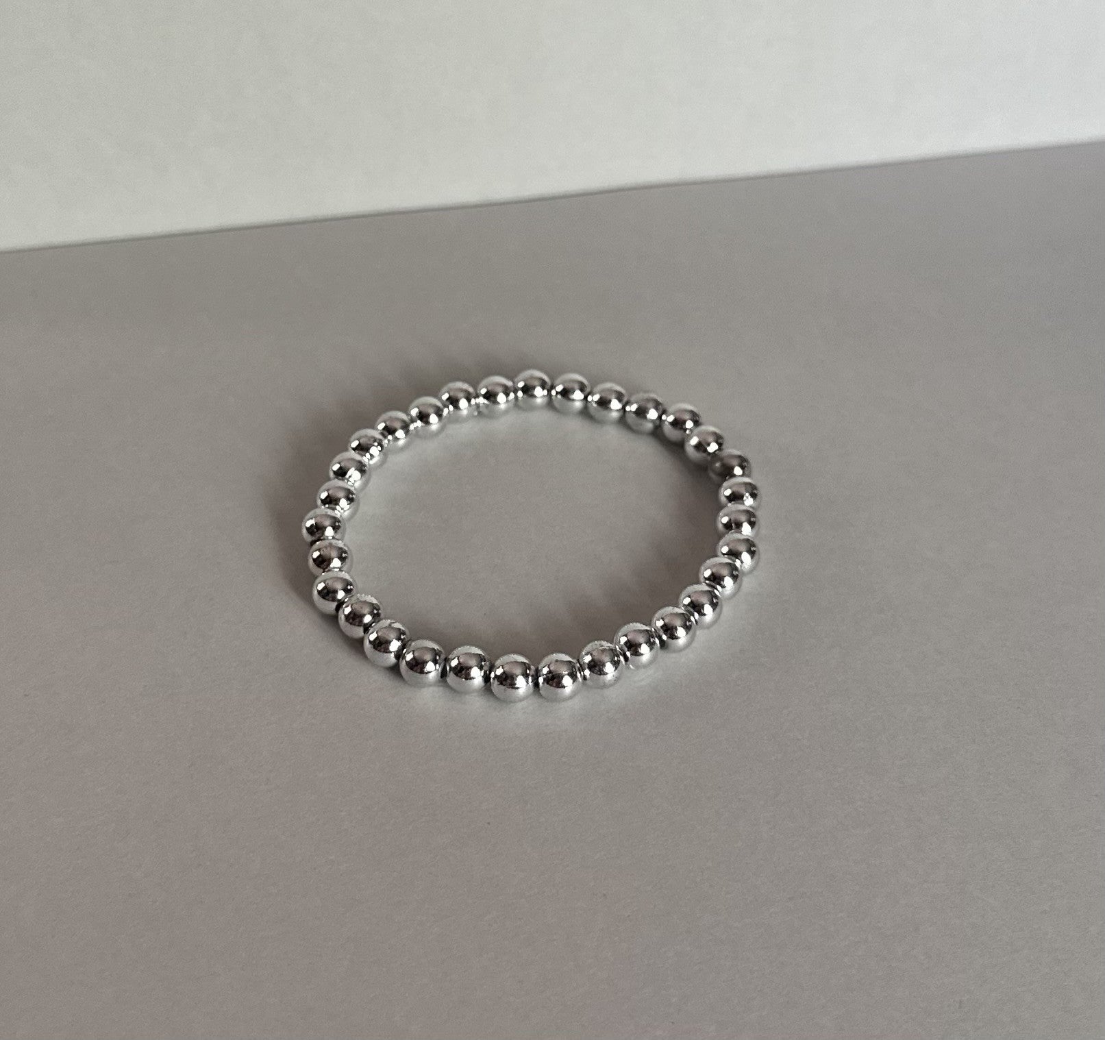 Handmade with smooth silver-toned beads and strong elastic for easy stretch and all-day comfort.