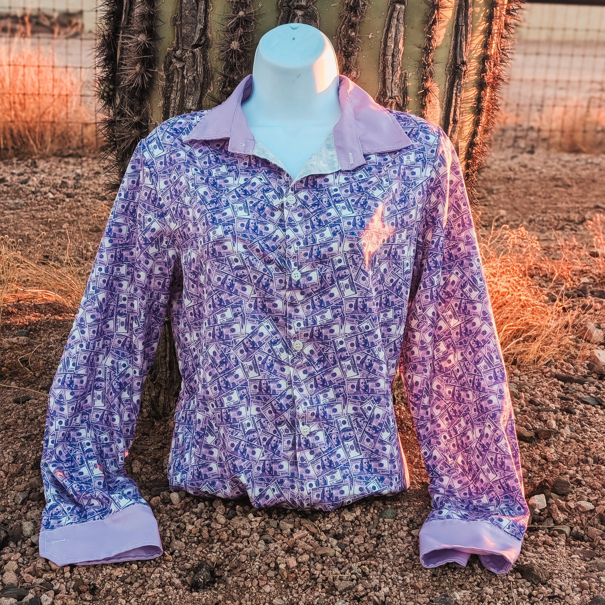 Why are our TGC button downs a must have? Not only are they bold and unique, just like you, but they are also extremely comfortable. They are made out of a lightweight, breathable stretch satin that is comfortable to wear year round and feels like wearing a pajama top. The subtle sheen makes it gorgeous in photos without the fabric looking cheap and shiny. We included extra length in the body so it always stays tucked regardless of your torso length and how far forward you move your arms when pushing your horse home or throwing a rope.