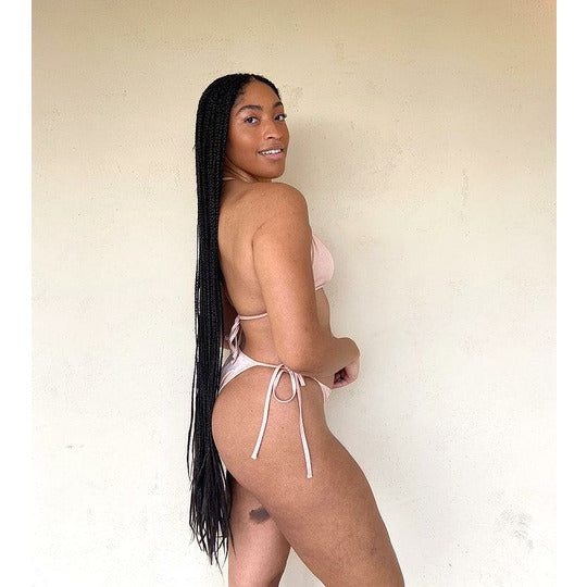 The Molly Bikini Top is classic triangle shaped swim top. The top ties around the neck, and ties around the back. This clean aesthetic top is simple yet flattering!