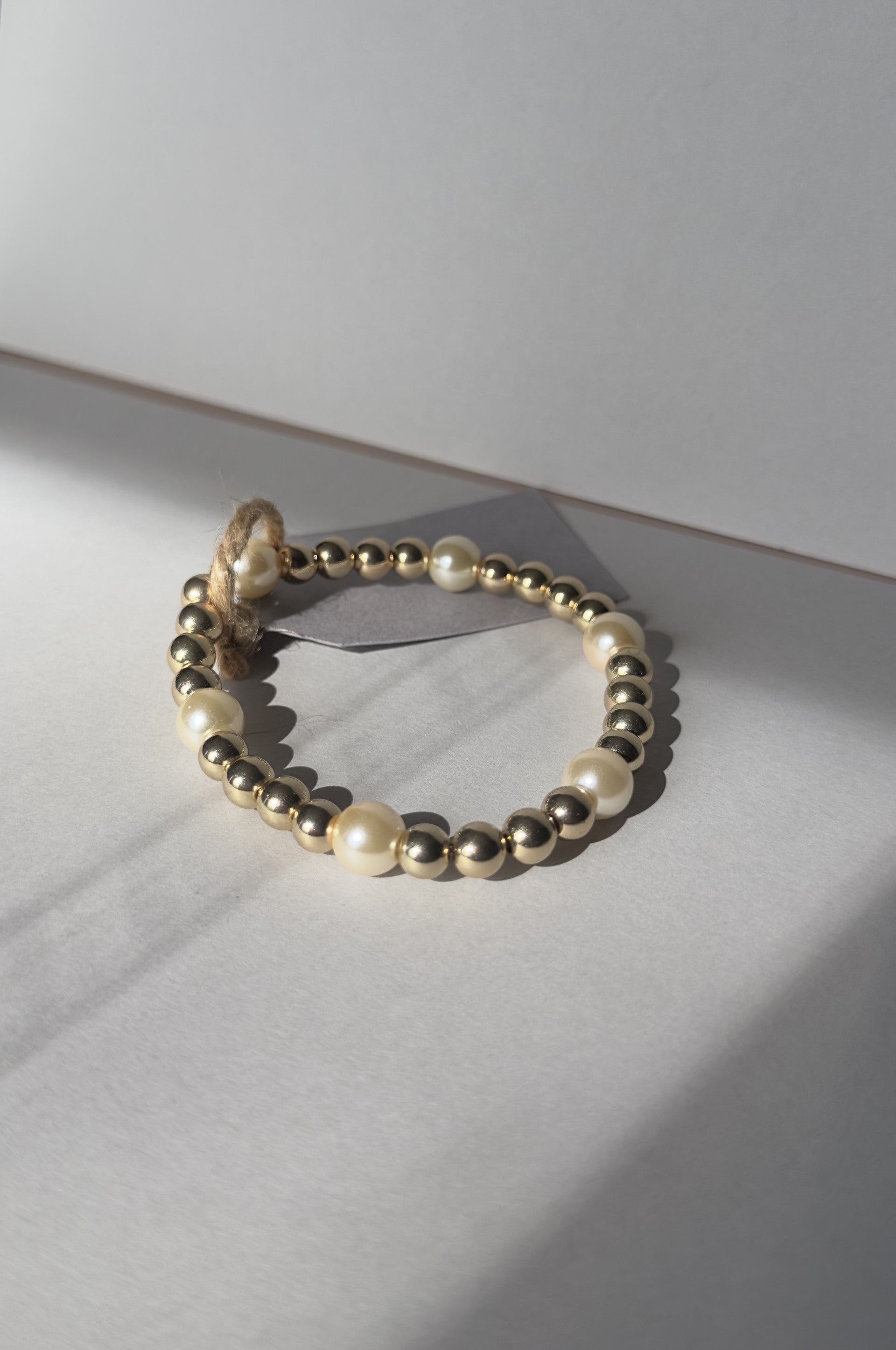 Handmade | Western Elegance | Gold & Pearl Beaded Bracelet