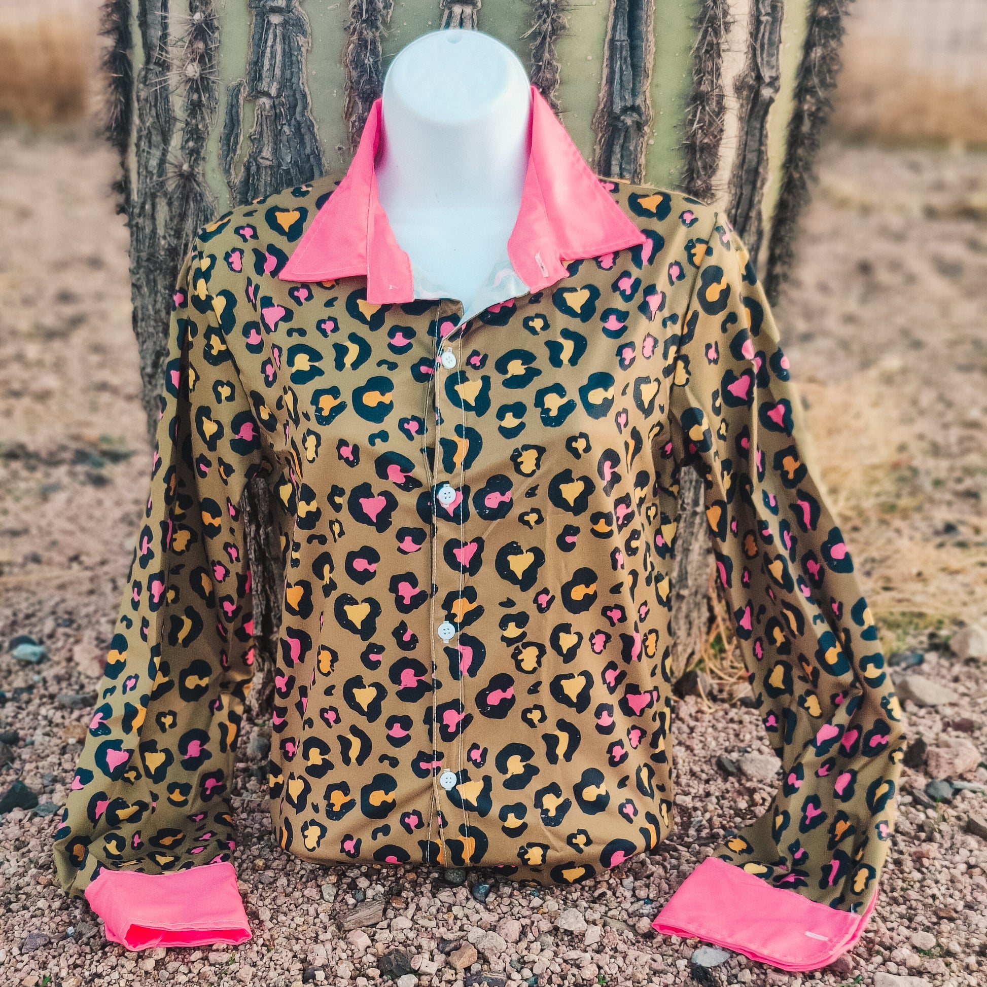 Our button downs have been thoughtfully designed for the active cowgirl. Our main warehouse is out in the Arizona Desert where it can get as hot as 125 degrees in the summer and our owners, Anastasia & Brad, are originally from Maryland where it can get to a swampy 100% humidity with temps between 95-100. They are no stranger to being hot and uncomfortable at jackpots, barrel races, ropings, rodeos, and horse shows. When Anastasia set out to design our button downs she had three main goals: reasonably priced, a comfortable fabric, and a reliable fit. After 3 years she finally found what she was looking for and brought our button downs to market. All of our button downs are made out of a soft, lightweight stretch satin that has a subtle sheen to it. This makes them airy and comfortable even during the hottest days. They are stretchy enough that you can easily push your horse home or throw a rope without worrying about hulking out of your shirt or feeling restricted in your movement. They are also wrinkle resistant as long as you avoid balling them up and throwing them under that pile of tack we know is on the floor of your trailer. With our button downs you can look good, feel good, and still have enough money for entry fees even after you buy a whole new wardrobe for the weekend.