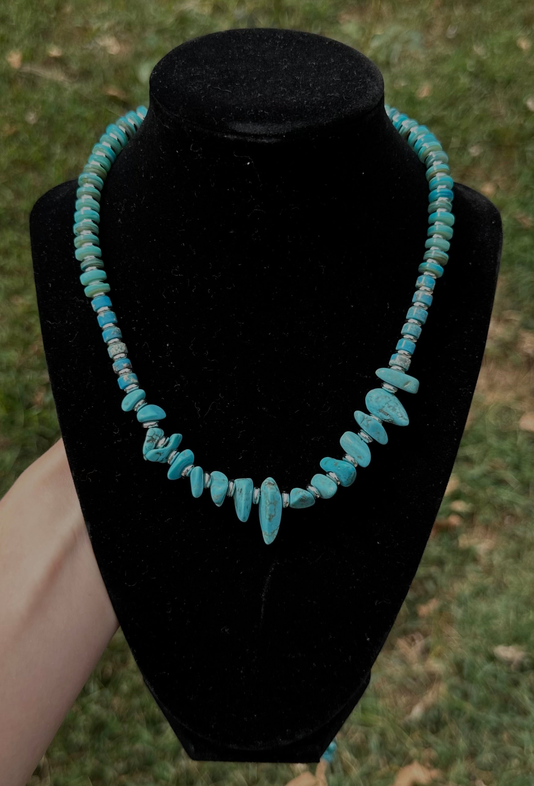 Turquoise has long been a stone of strength and protection, worn by cowboys and cowgirls alike as a symbol of resilience and spirit. Paired with its silver accents, this necklace carries a rugged elegance that transitions seamlessly from dusty trails to nights under the rodeo lights.