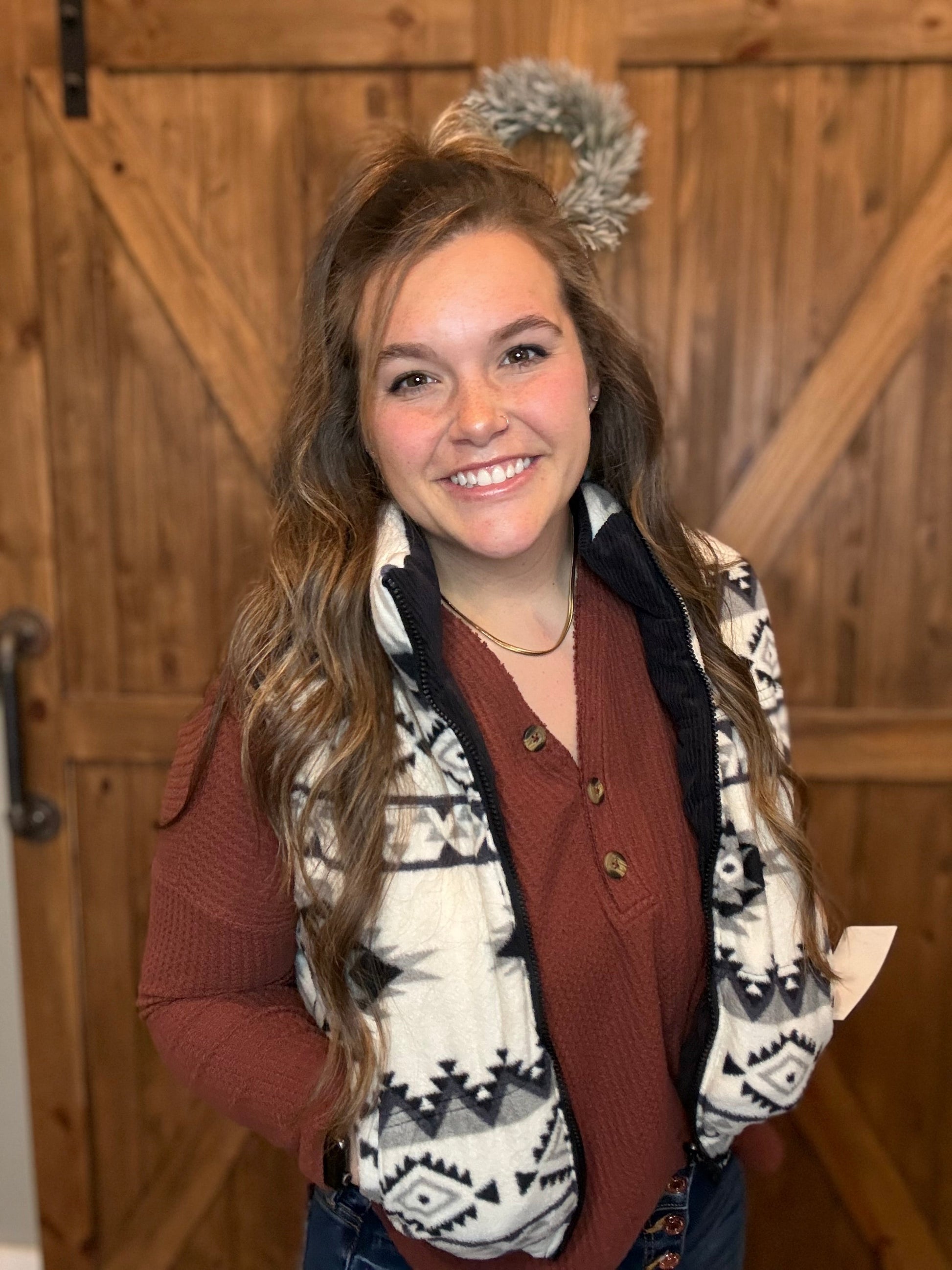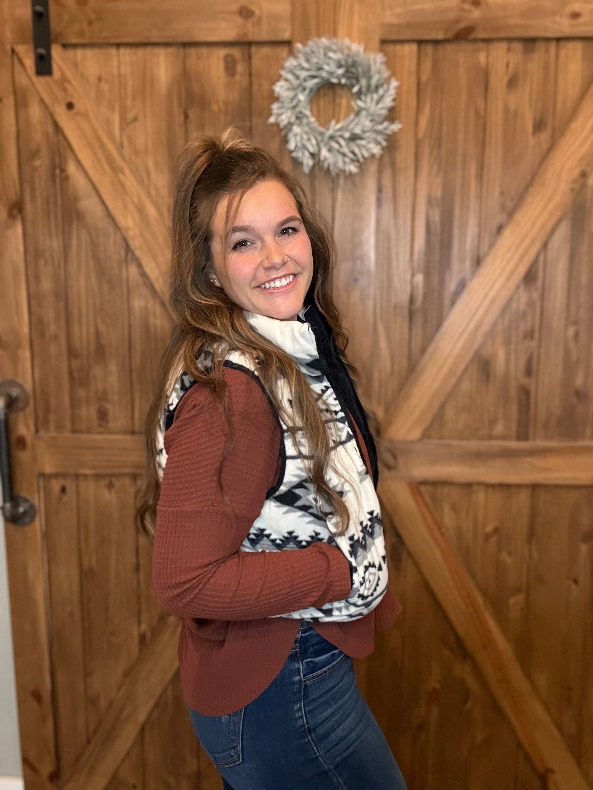 Turn heads in this cozy, western-inspired reversible vest — the perfect blend of trend and comfort.
