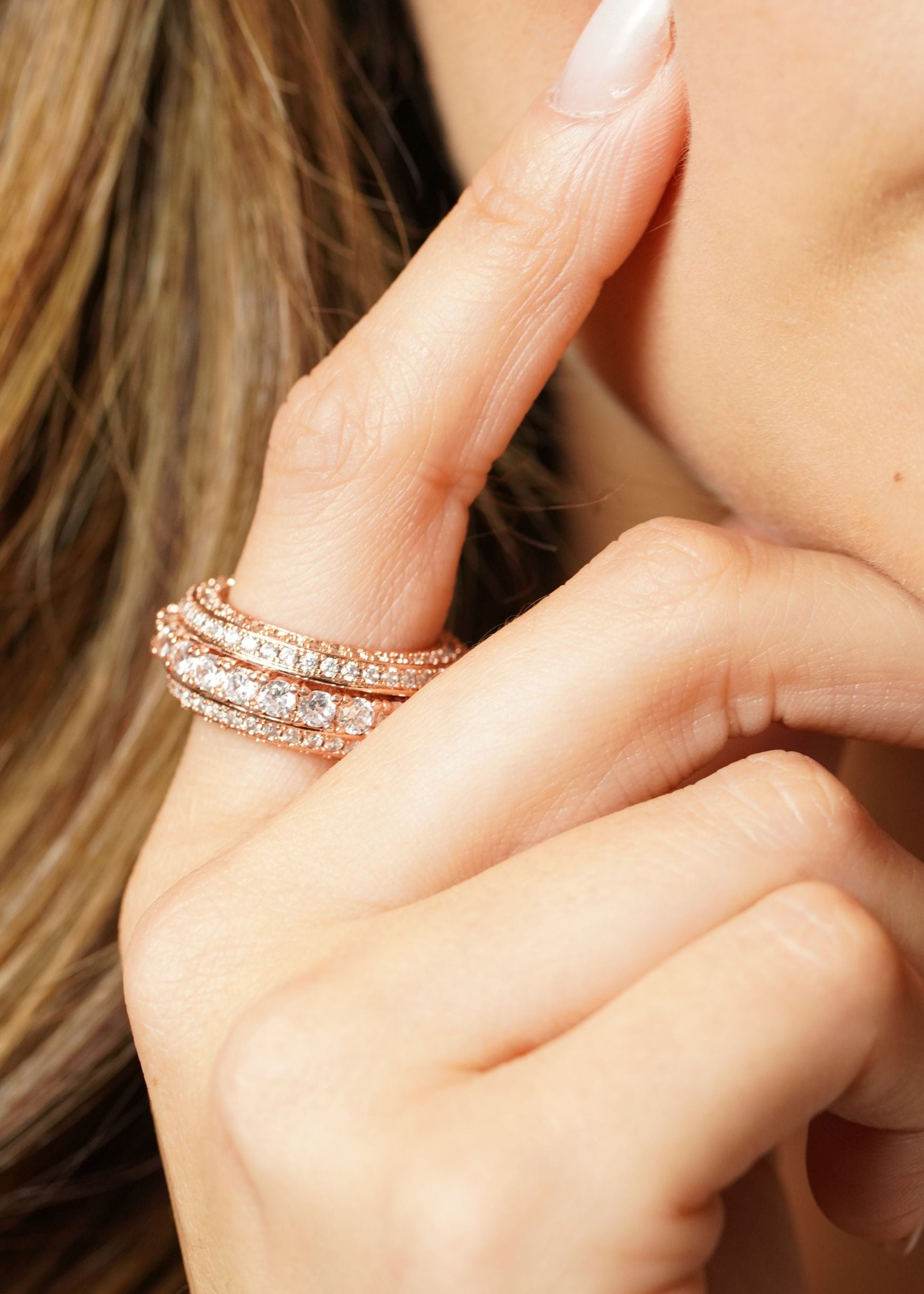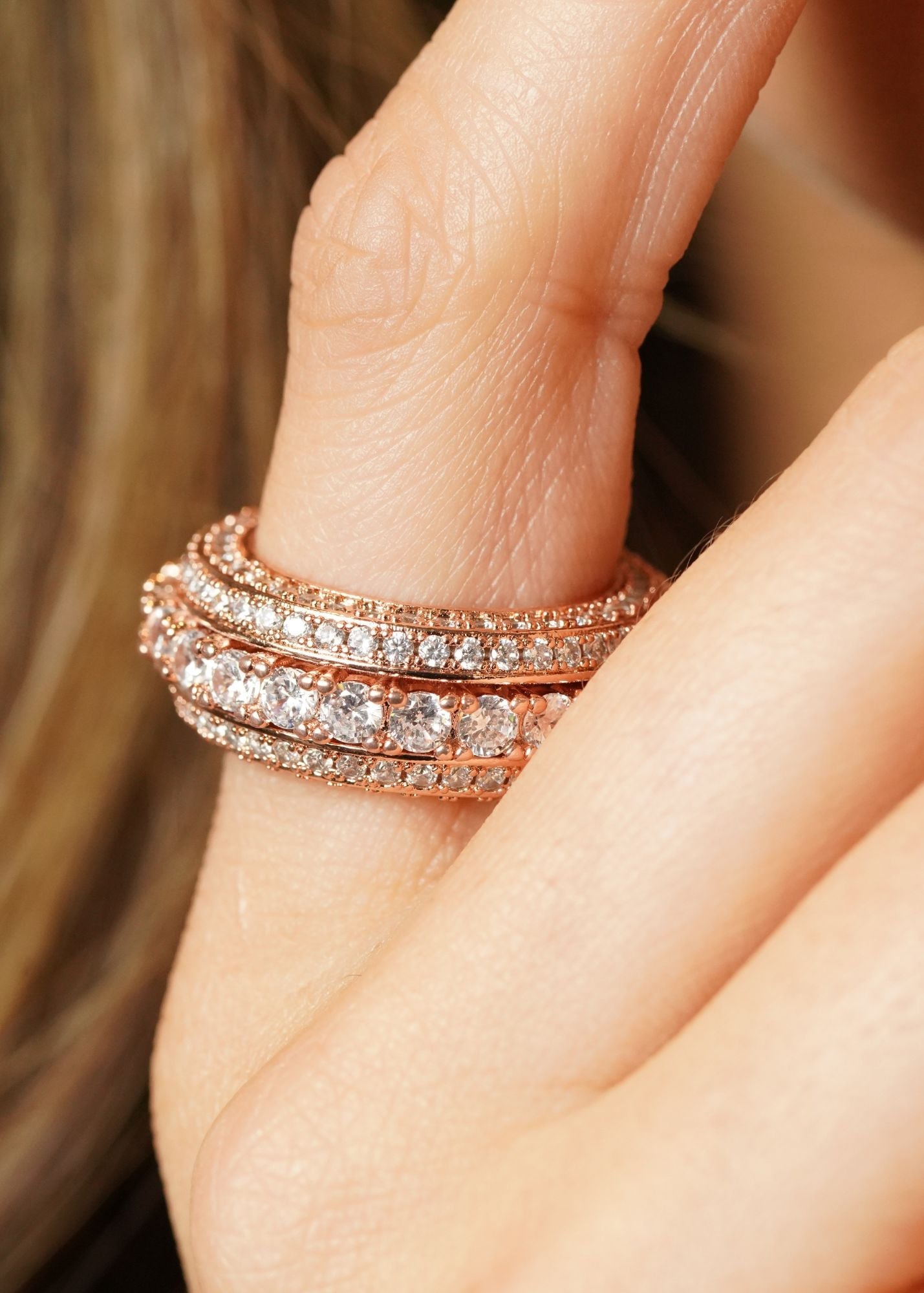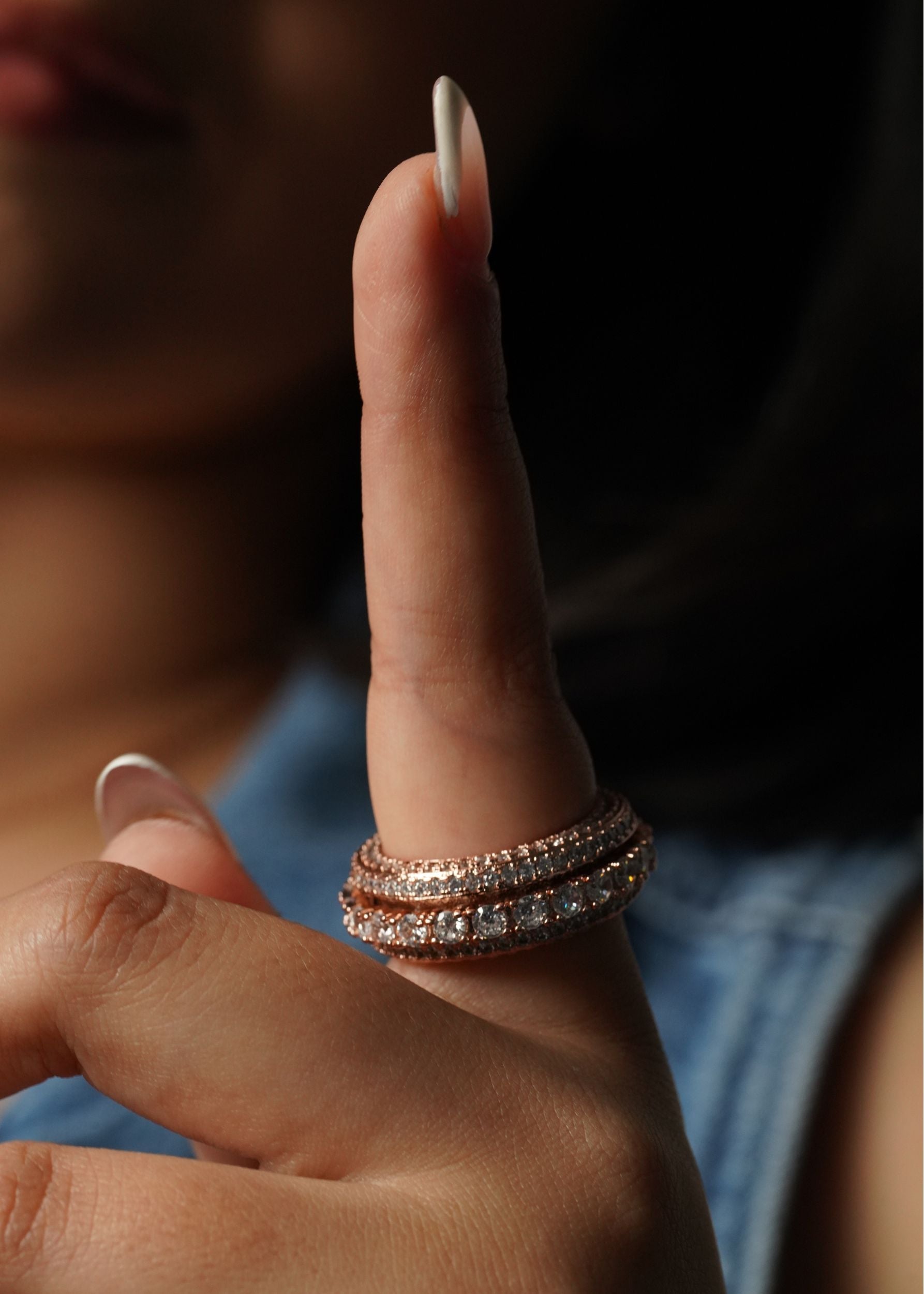 Our signature Center Stage Spinner but in rose gold. The most delicate of color of blush, paired perfectly with our Heartfelt Necklace. The Rose Center Stage is designed to make a statement, feel luxurious, and be functional. This ring will be your best companion, serving as a stress reducing fidget spinner while also grabbing the attention of everyone you meet. Innovation at its finest.