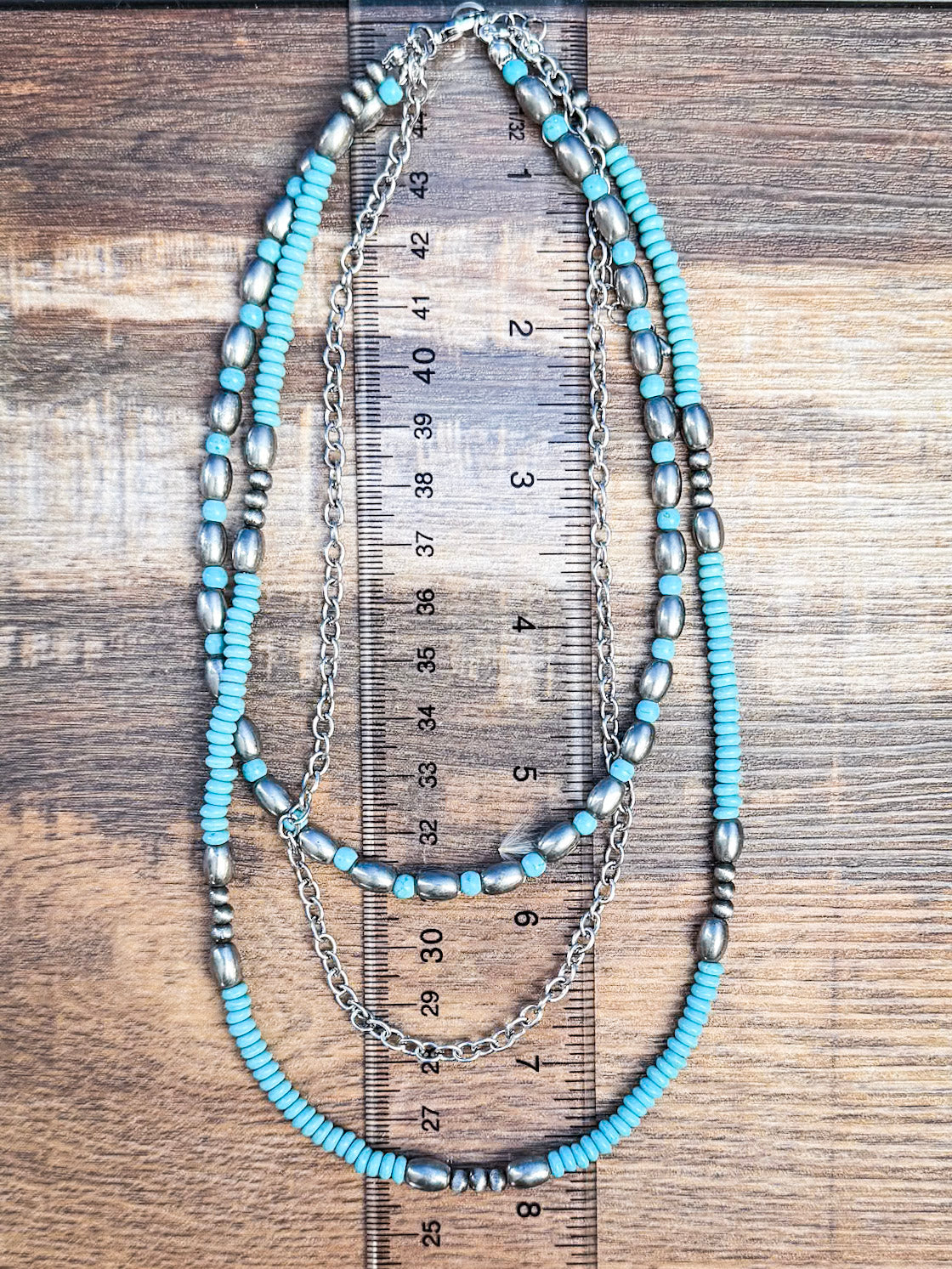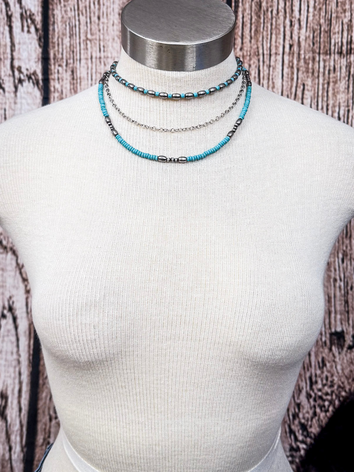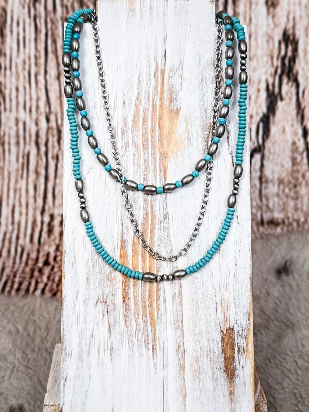 Crafted from high-quality materials, the necklace is lightweight and comfortable, making it ideal for everyday wear or special events. Embrace your unique style and celebrate your love for western aesthetics with this eye-catching Faux Navajo Pearl and Chain Layered Necklace!