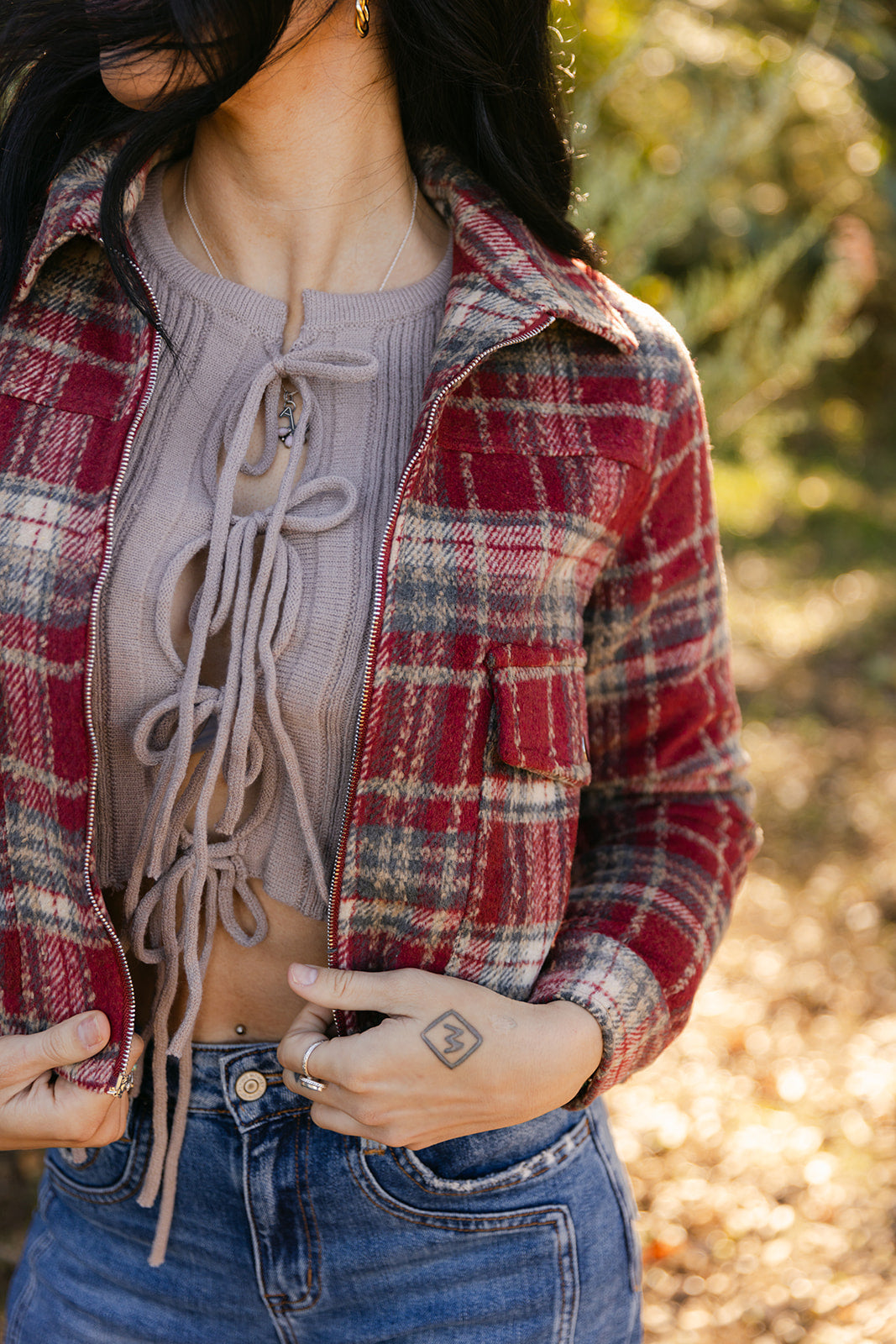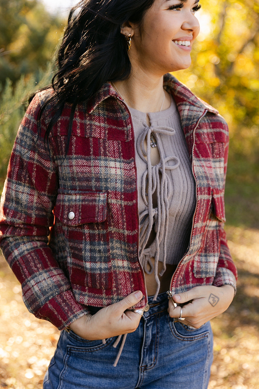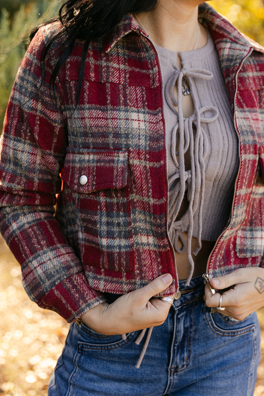 Tartan Brush Zip Up Low Pocket Shacket