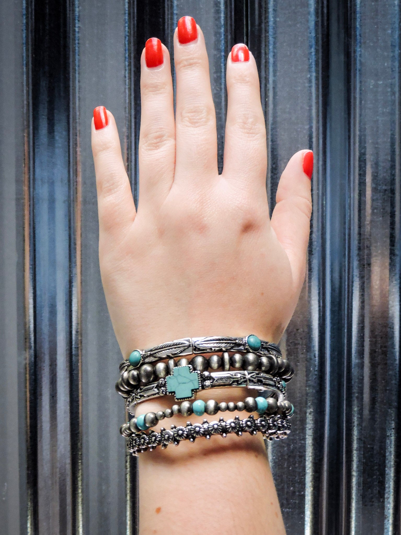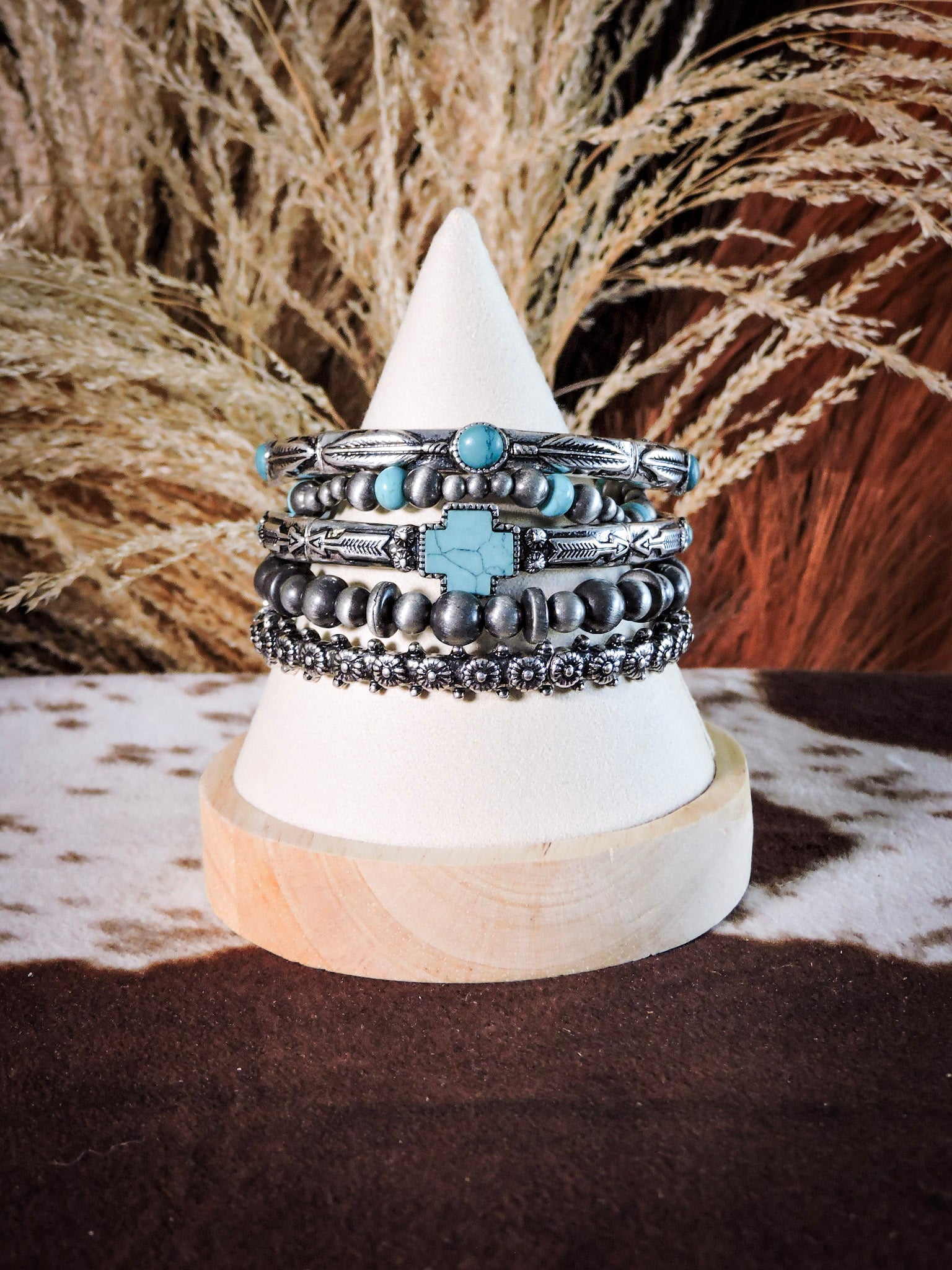 Elevate your accessory game with our stunning collection of Western bracelets, designed to seamlessly blend classic charm and modern flair. Each piece, from intricately crafted leather cuffs to vibrant beaded designs, reflects the rich heritage of Western style while offering a fresh twist. Whether you prefer the understated elegance of a simple silver bangle or the bold statement of stacked colorful bracelets, our collection has something for everyone. Perfect for layering or wearing alone, these versatile bracelets can effortlessly transition from casual outings to evening events. Embrace your unique style and let our Western bracelets be the finishing touch to any outfit!