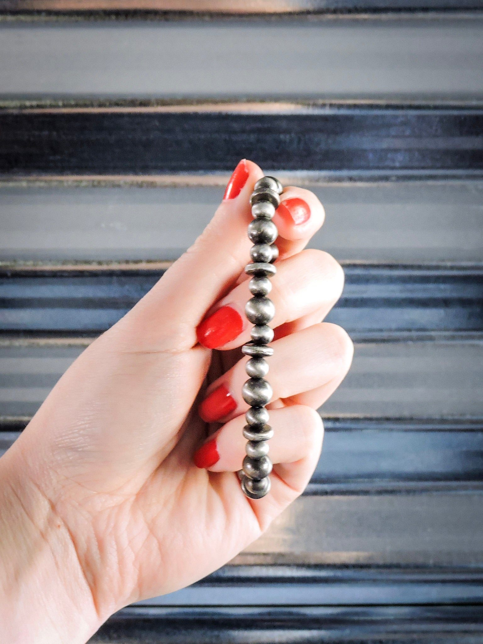 Faux Navajo Pearl and Metal Stretch Bracelet Set