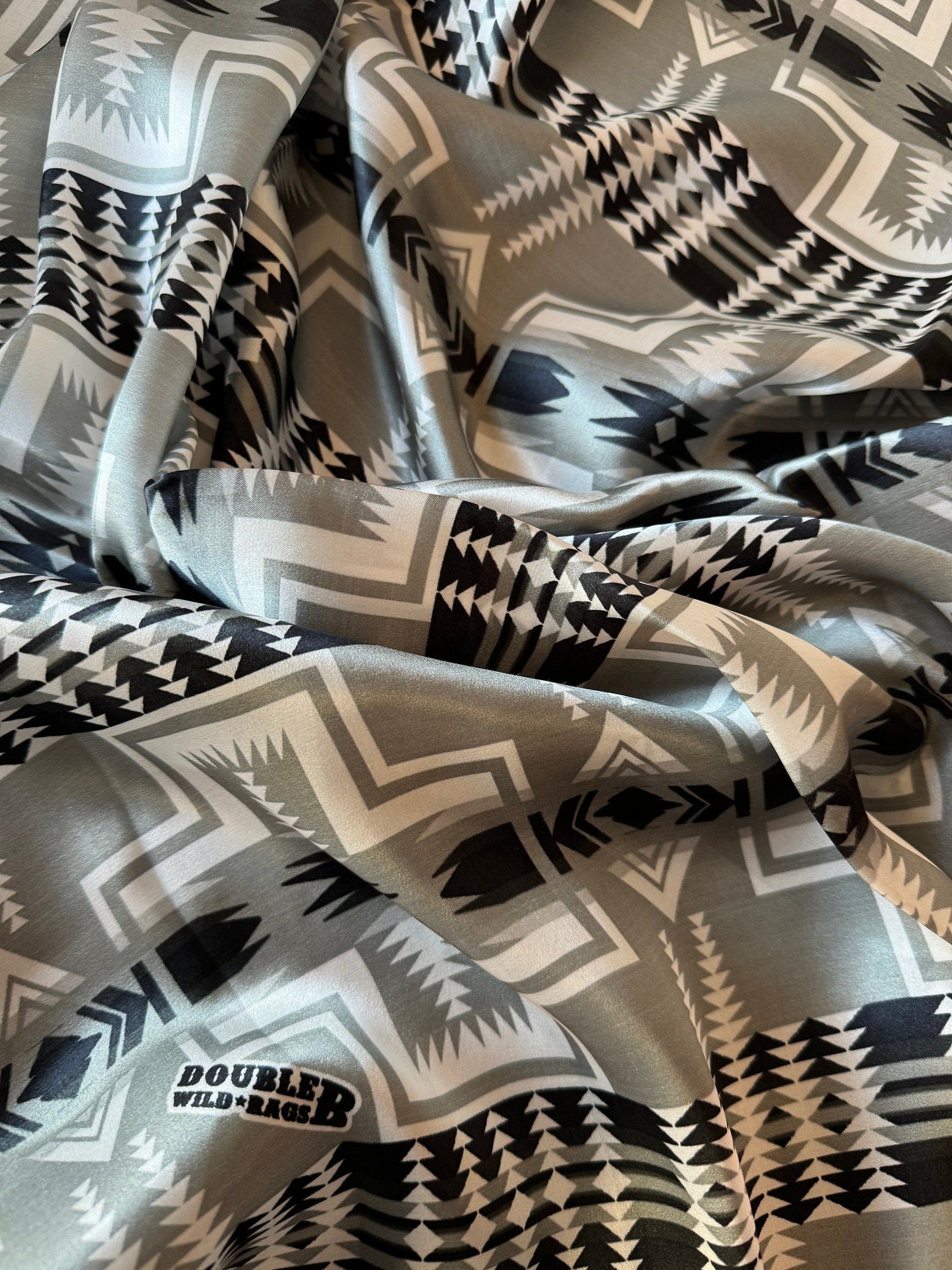 Silk Wild Rag Black and Silver Navajo Native Print by Double B Wild Rags