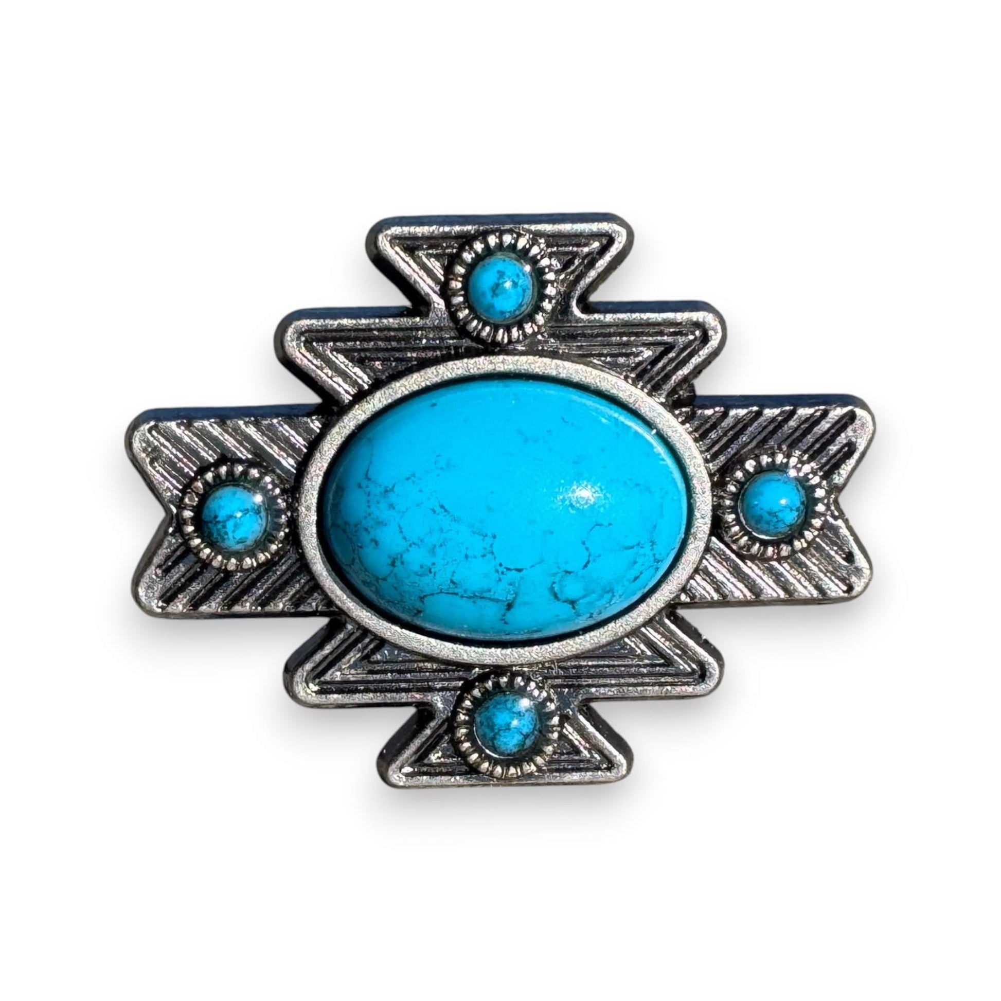 Beautiful concho slide with simulated turquoise stone accent