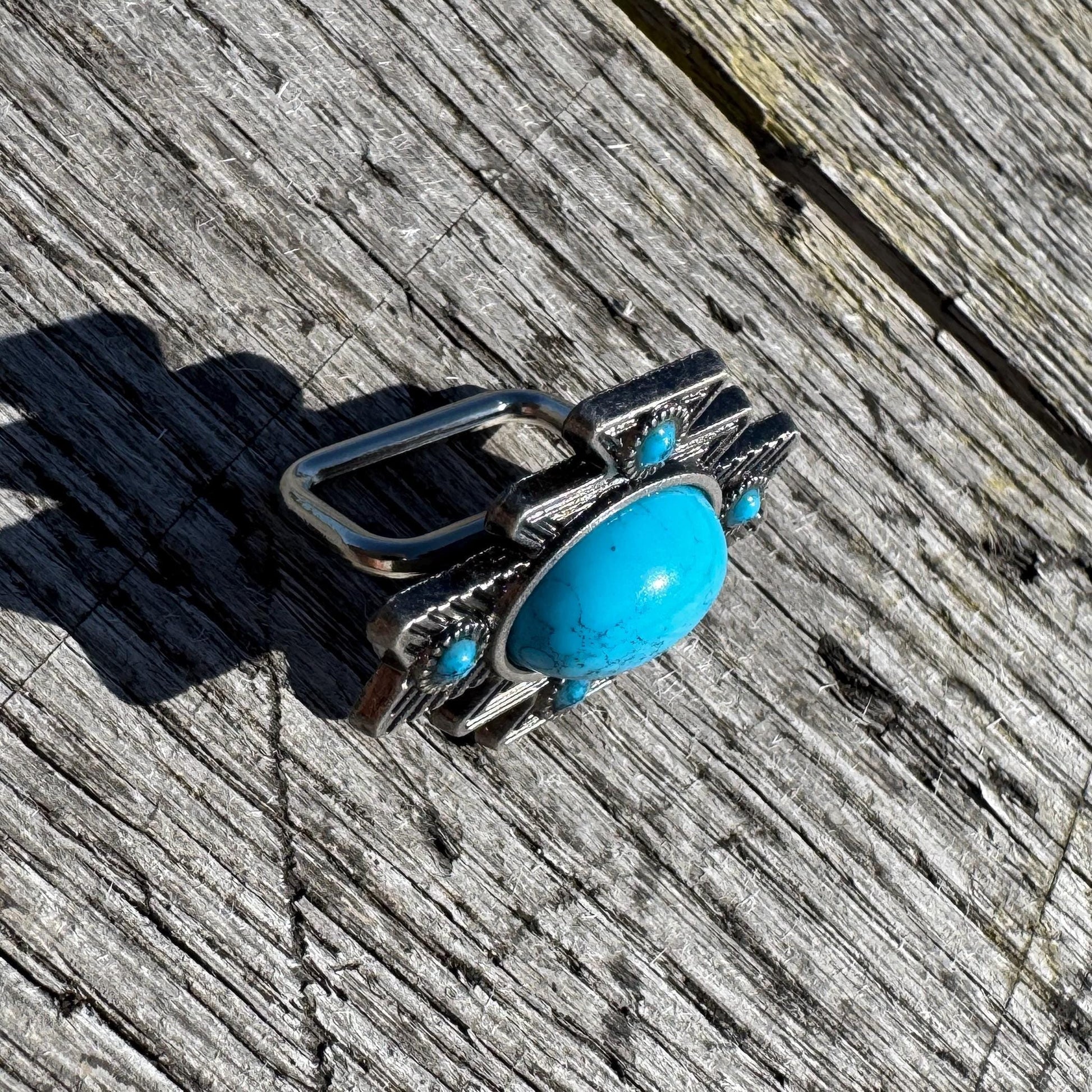 Southwestern Style Cowboy Scarf Slide Keeper with turquoise stone BY Double B Wild Rags