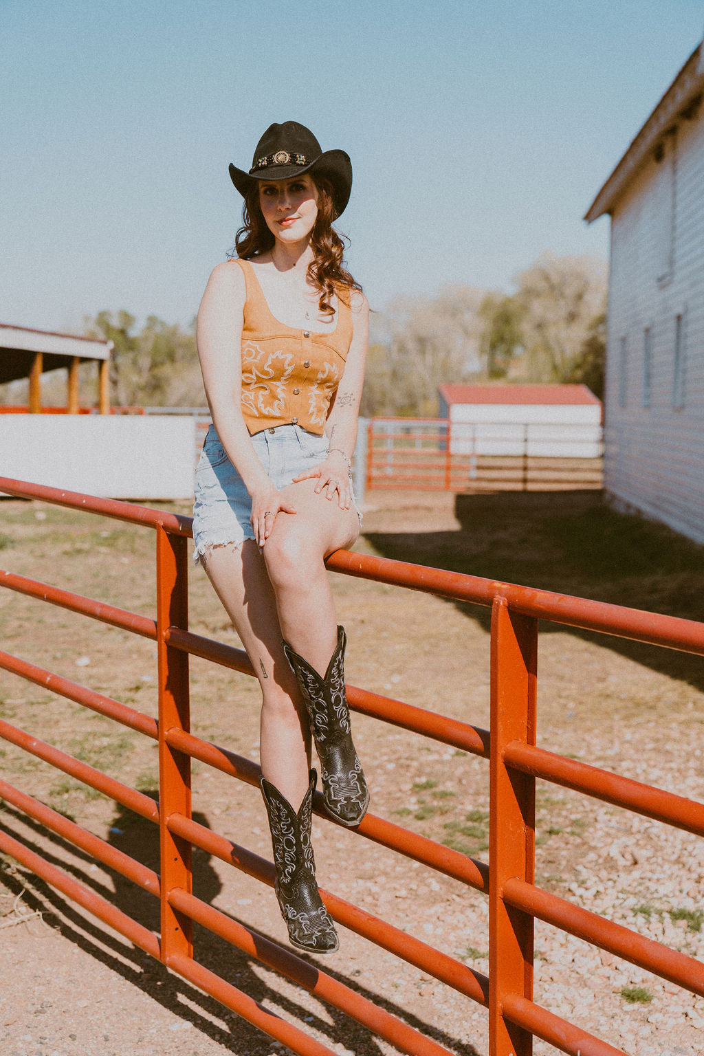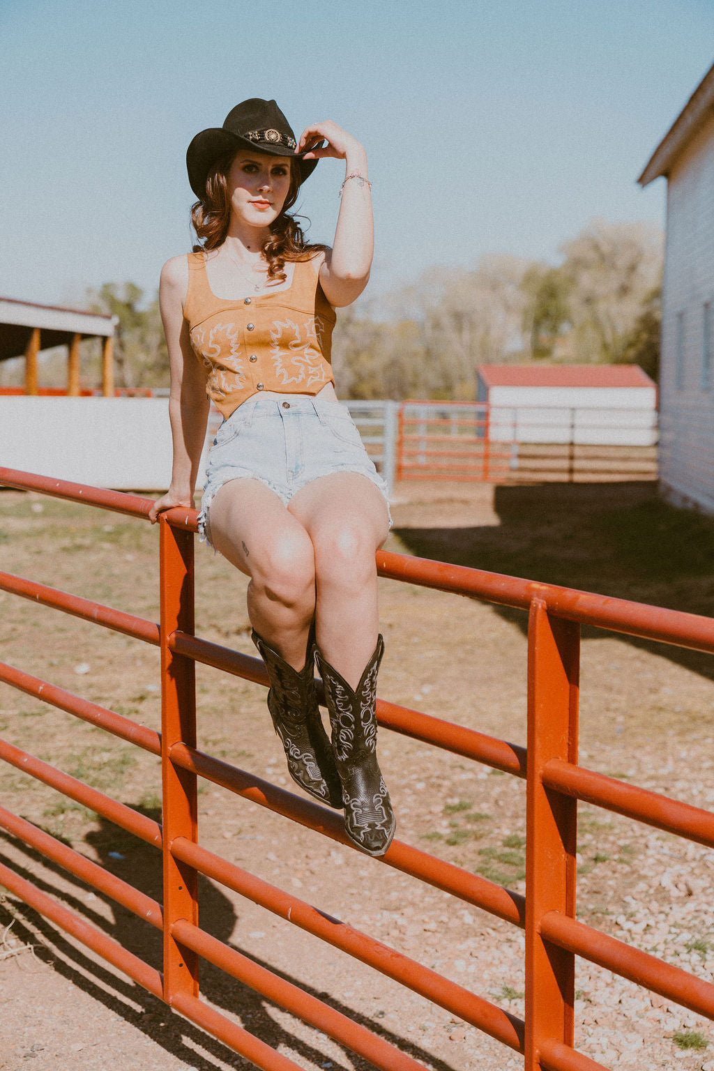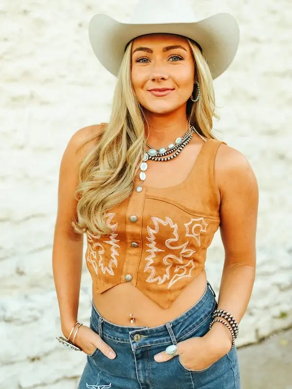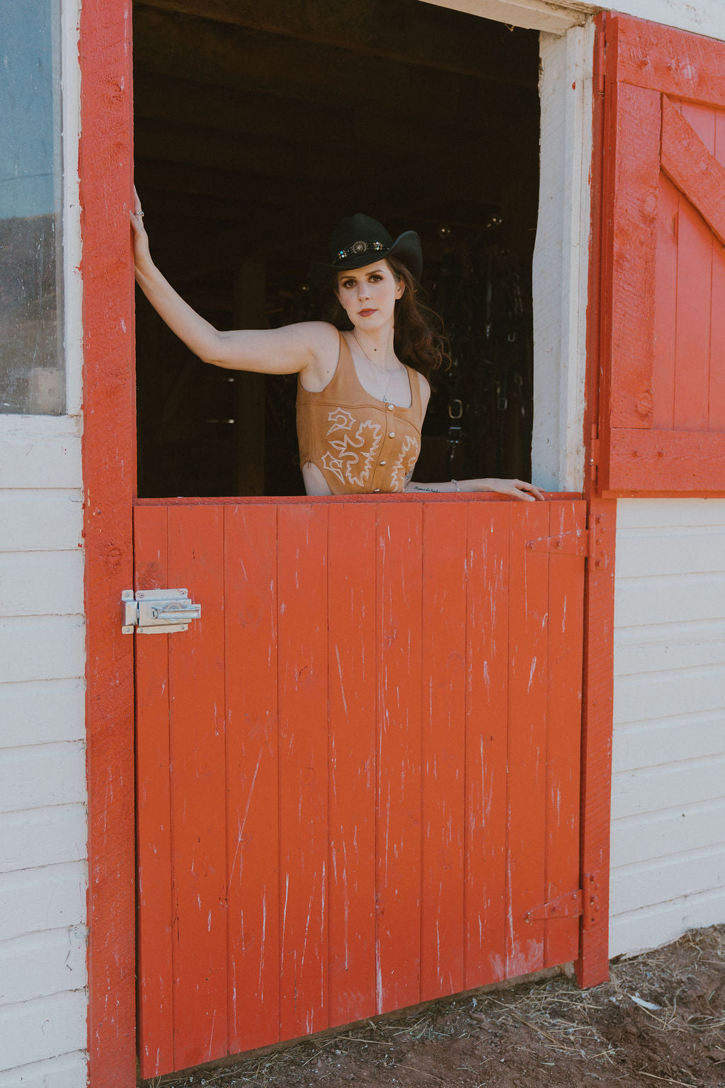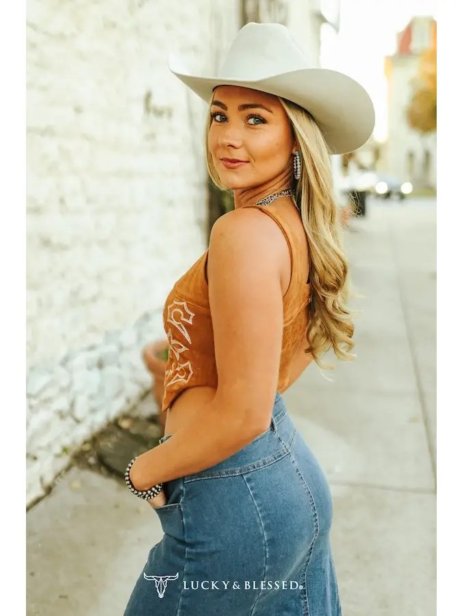 The Camel Suede Stretch Boot Stitch Corset Top