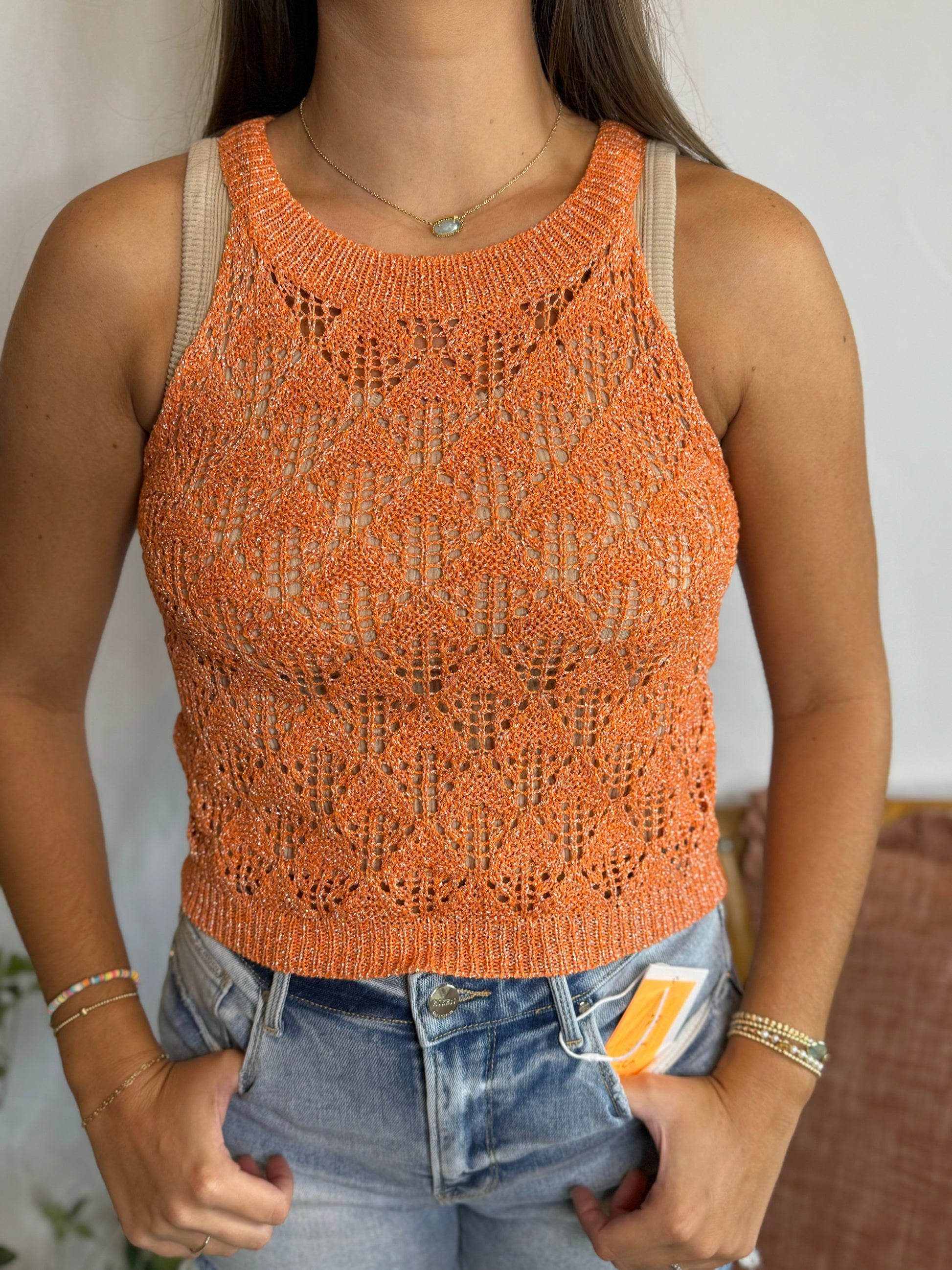 The Crocket Tank is a gorgeous crochet knit tank top that is perfect for game day!! A great layering piece!!