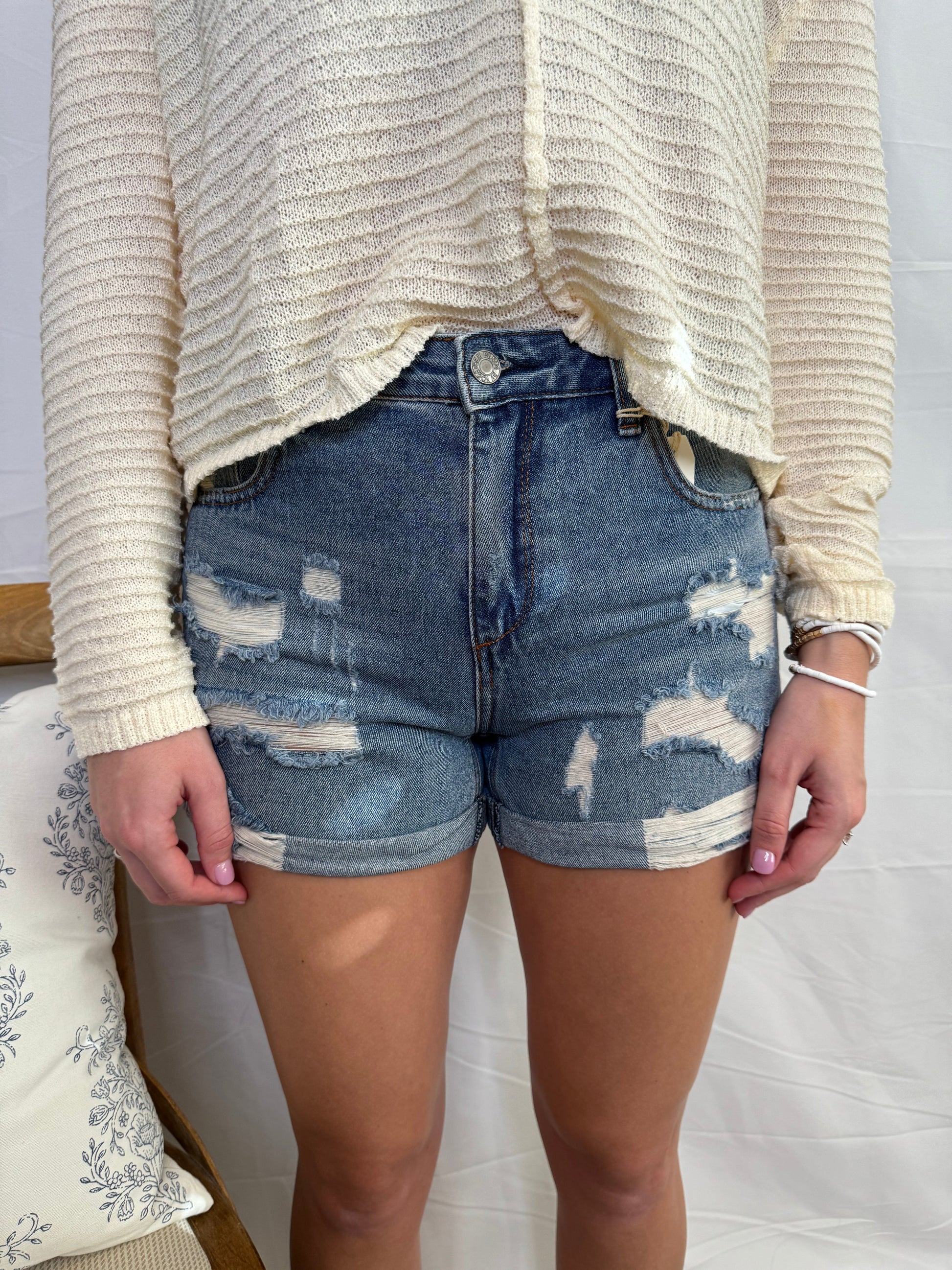 The Distressed Shorts are the perfect short for the summer. These high waisted shorts have minimal stretch and the perfect amount of distressing.