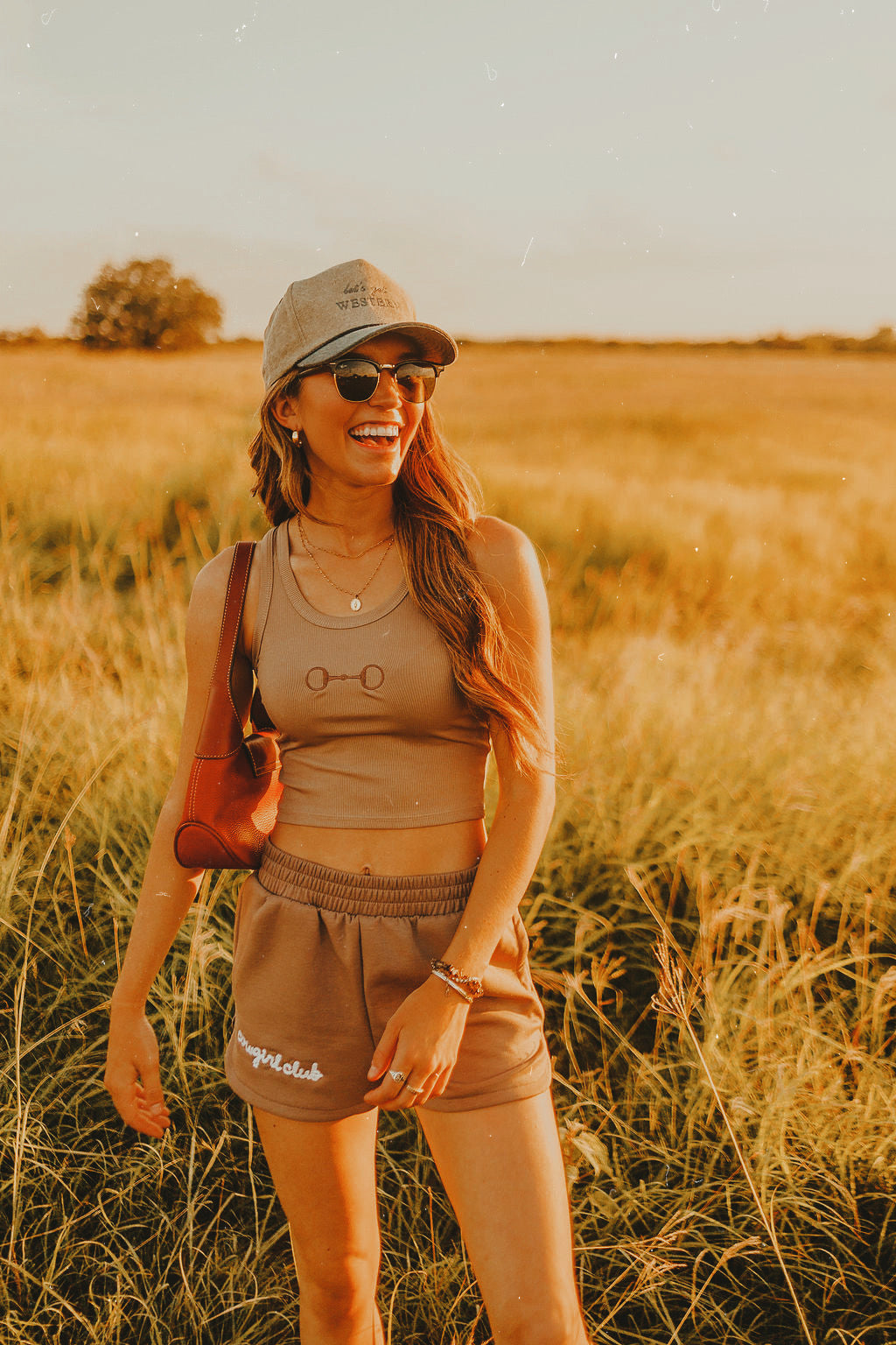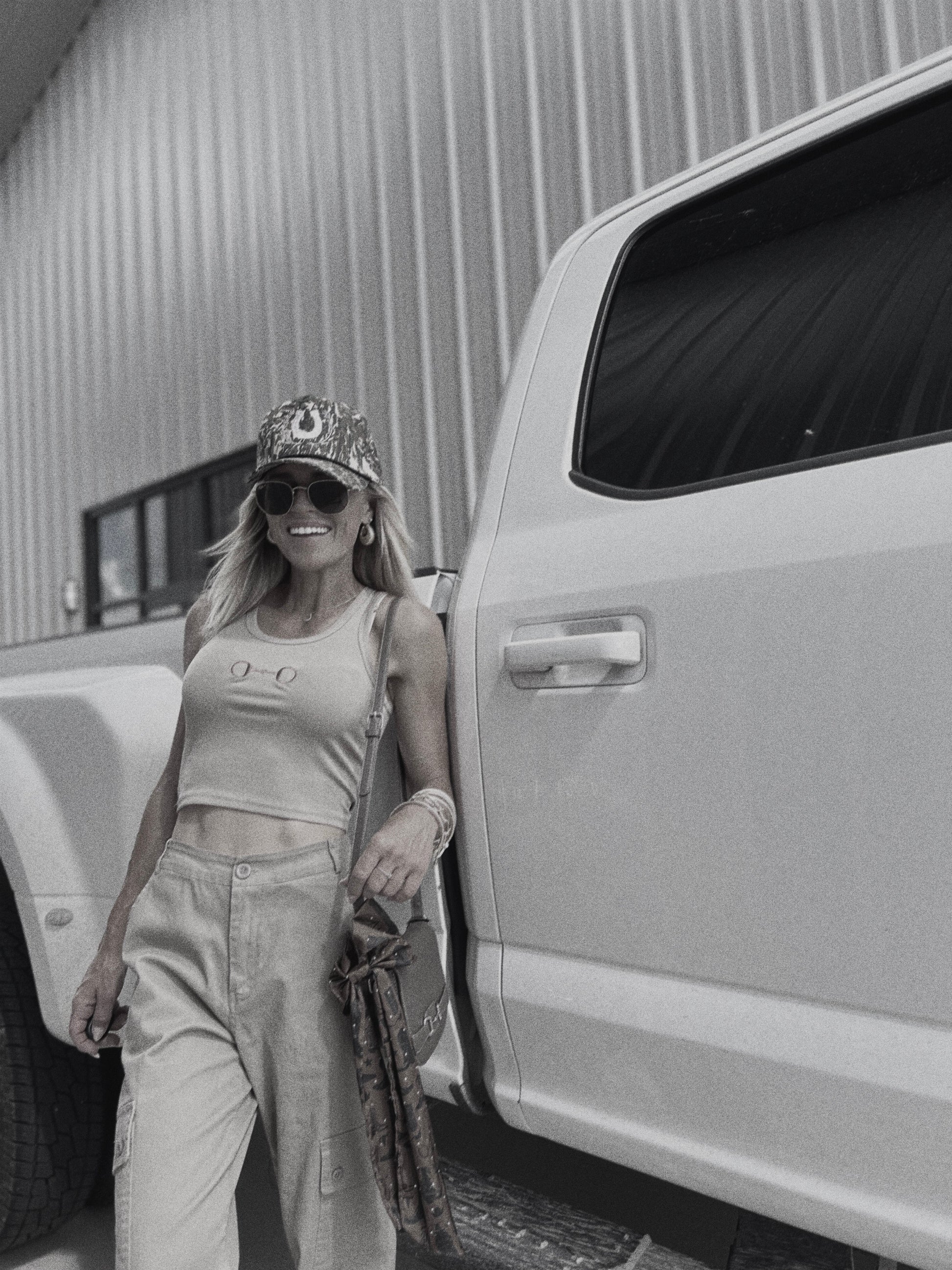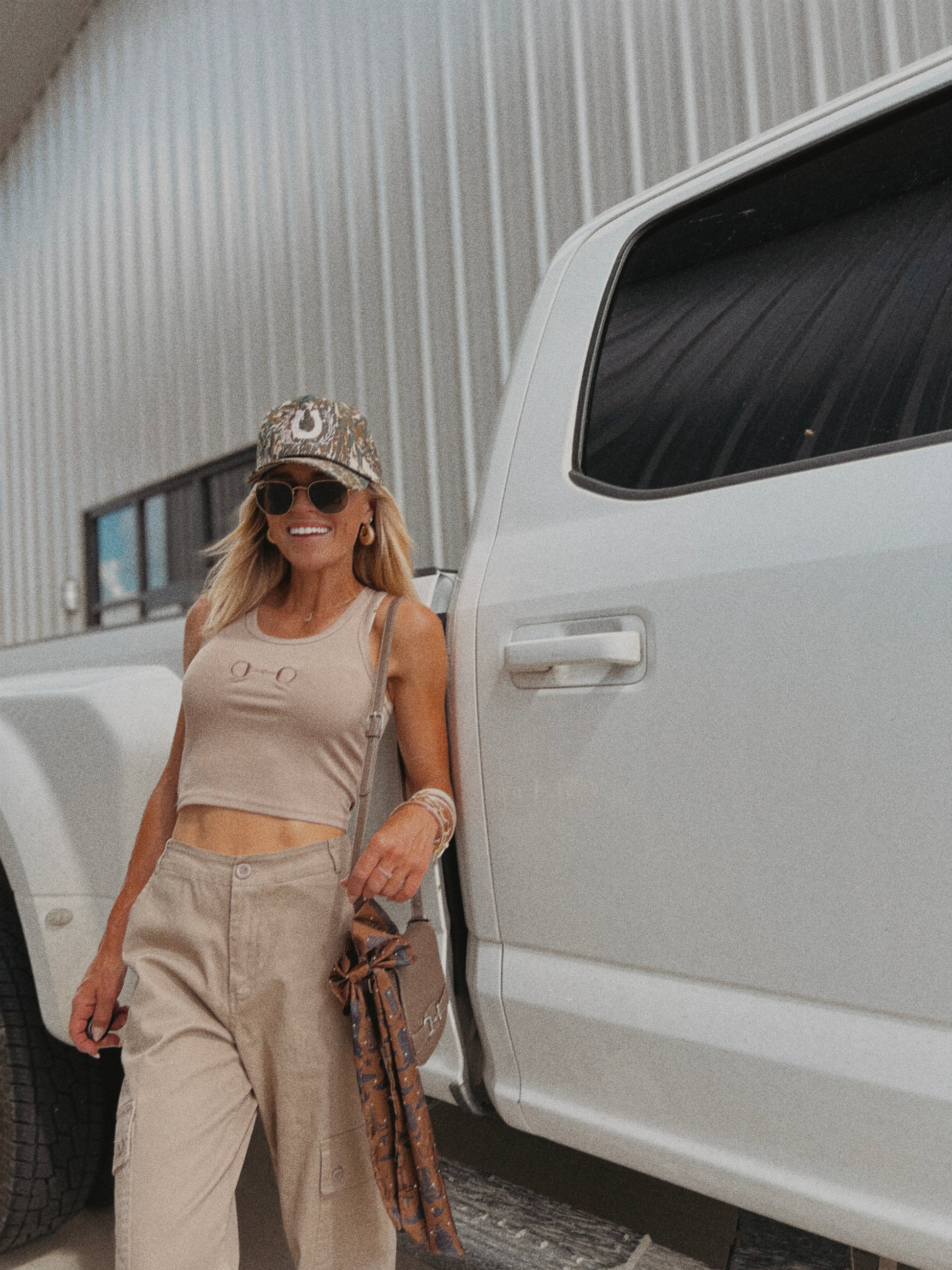 Classic with a Western twist. This cropped taupe ribbed tank features a brown embroidered horsebit front and center. Classic + clean silhouette, soft stretch, and just enough edge to make a statement—no matter what your plans are.