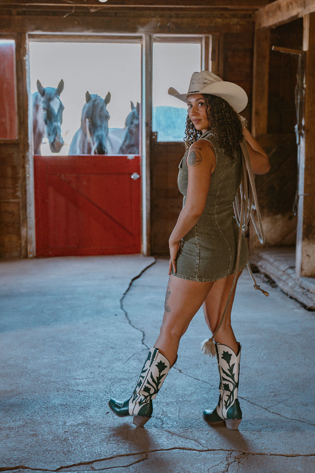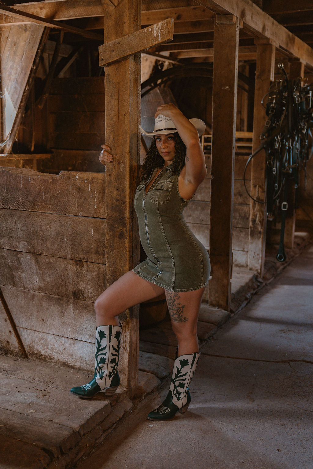 Rock the Olive Denim Mini Dress with confidence! This versatile dress is perfect for any occasion. Made with high-quality denim, it's comfortable and stylish. Show off your unique style with this fun and playful dress. Dress it up or down, it's up to you!