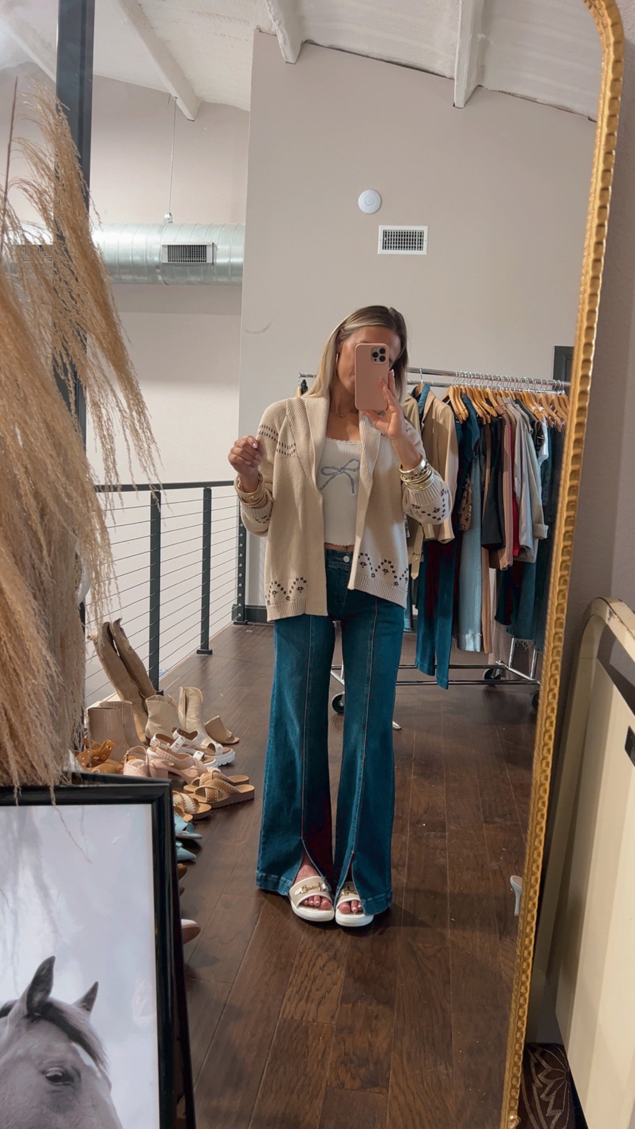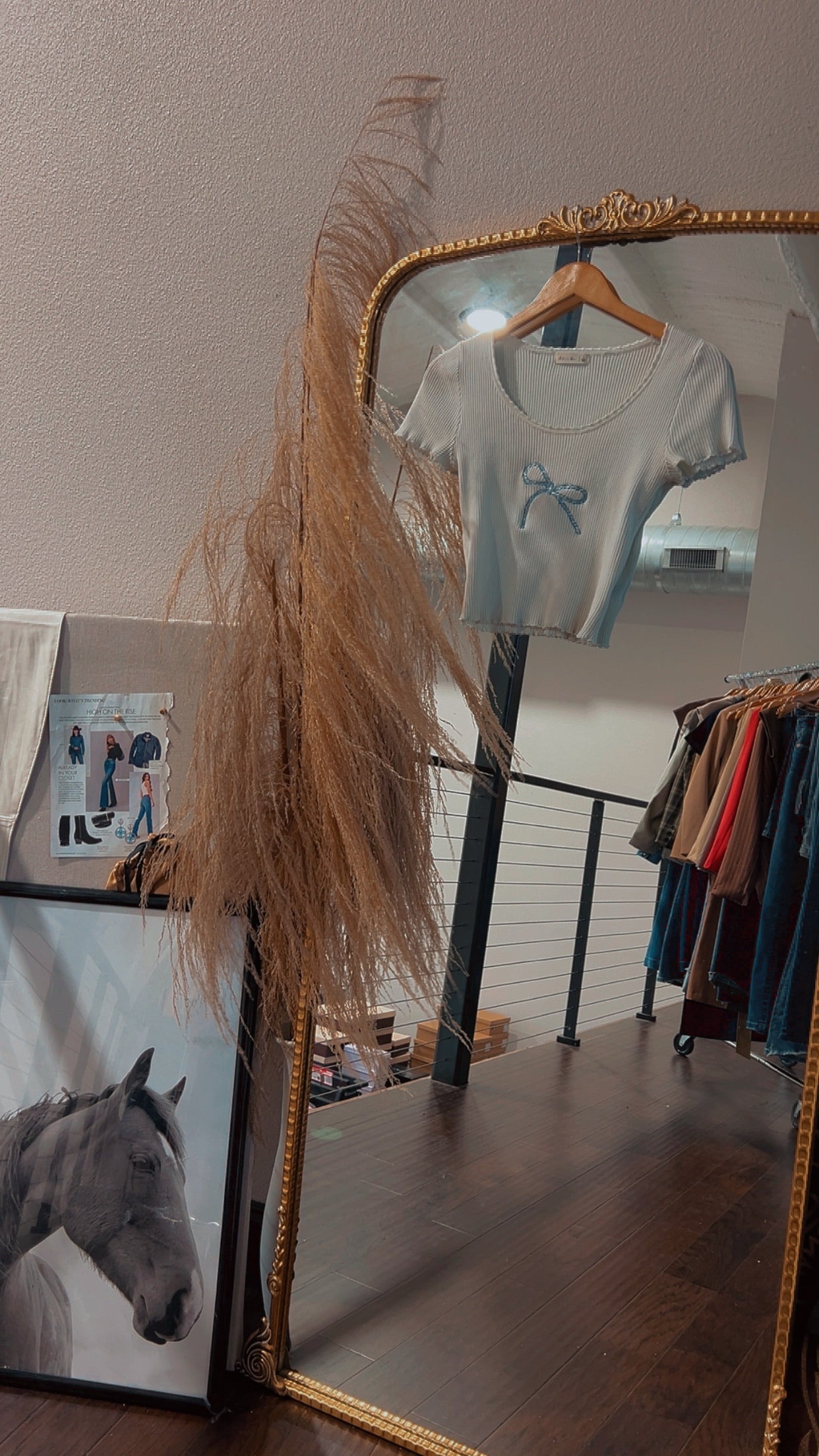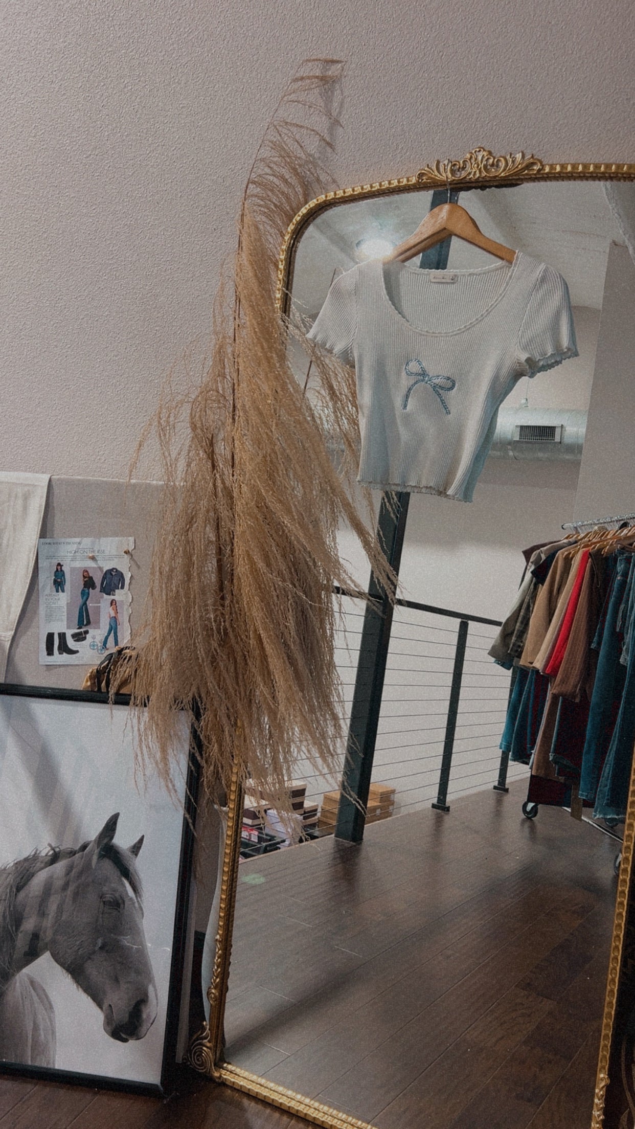A wardrobe staple with a feminine touch. This short-sleeve, scoop neck, ribbed cropped top features a lace detail that elevates any outfit. The embroidered roped bow adds the perfect amount of flare. Super comfy and true to size.