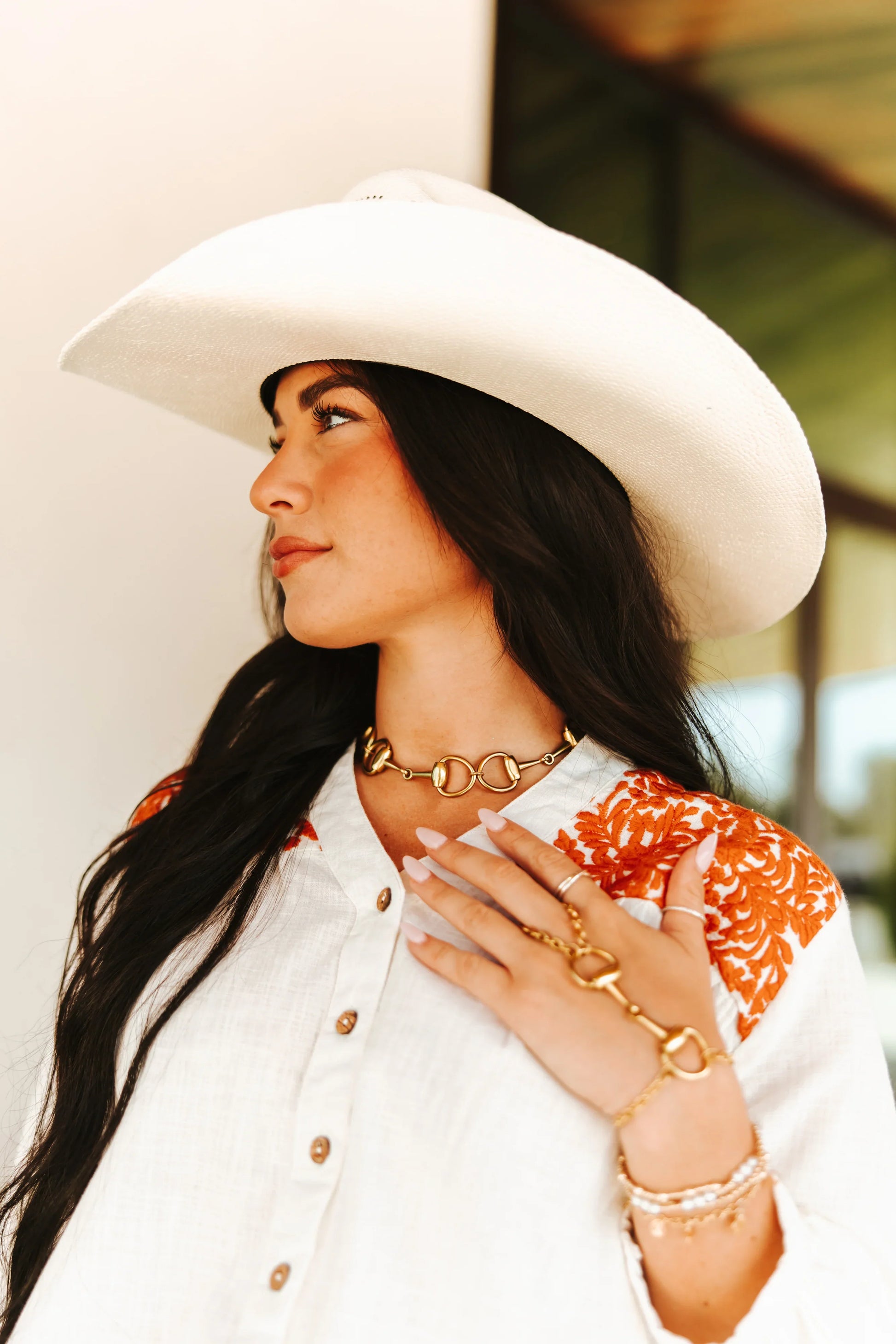 Designed and created by me, a rodeo wife in Texas, USA, the “Triple Threat Bitty Choker” is a bold nod to equestrian style in a petite, wearable size. Three miniature horse bits are linked together and strung on a 14" chain, with an extender so you can adjust the fit for comfort. Available in antique silver or golden finishes, each piece is made with artisan materials, most sourced from the USA. My rodeo roots inspire every design, and all materials are handmade, so slight variations add unique character. Normal jewelry care for plated pieces applies — avoid water, lotions, and perfumes to keep it looking its best.