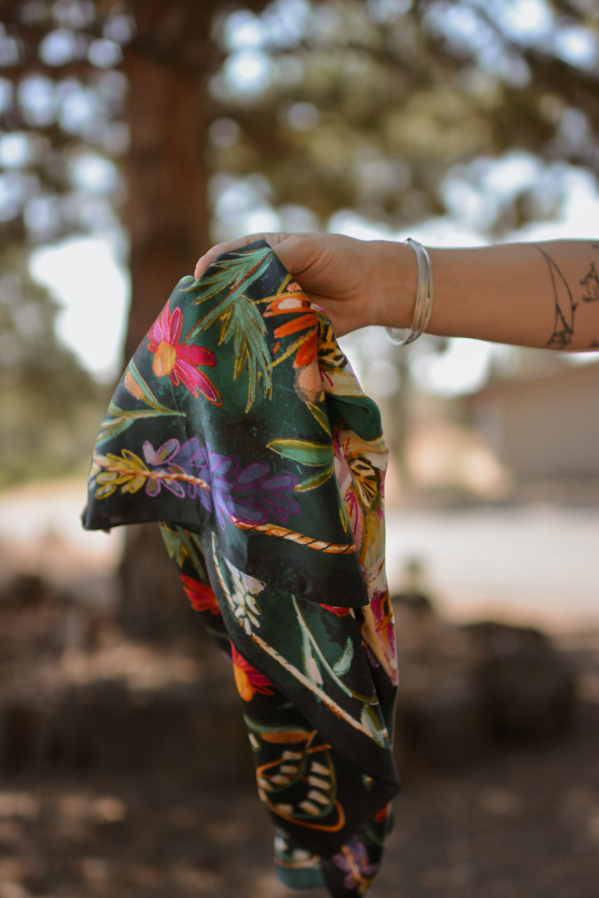 Vivid Wildflowers Western Cowgirl 35x35 Silk Wild Rag Scarf