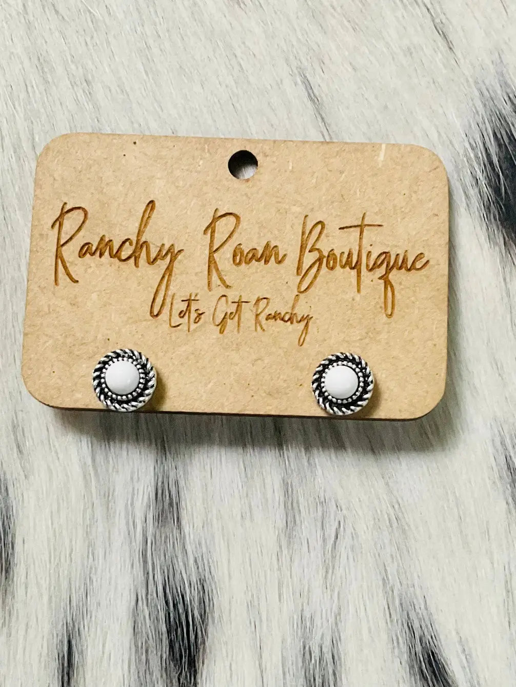 Embody your inner cowgirl with these White Turquoise Boho Western Small Studs. Each light earring features a 0.4" long white turquoise stone, making them small yet impactful. The alloy metal with antique silver plating ensures they are nickel, lead, and chrome-free, perfect for sensitive ears.
