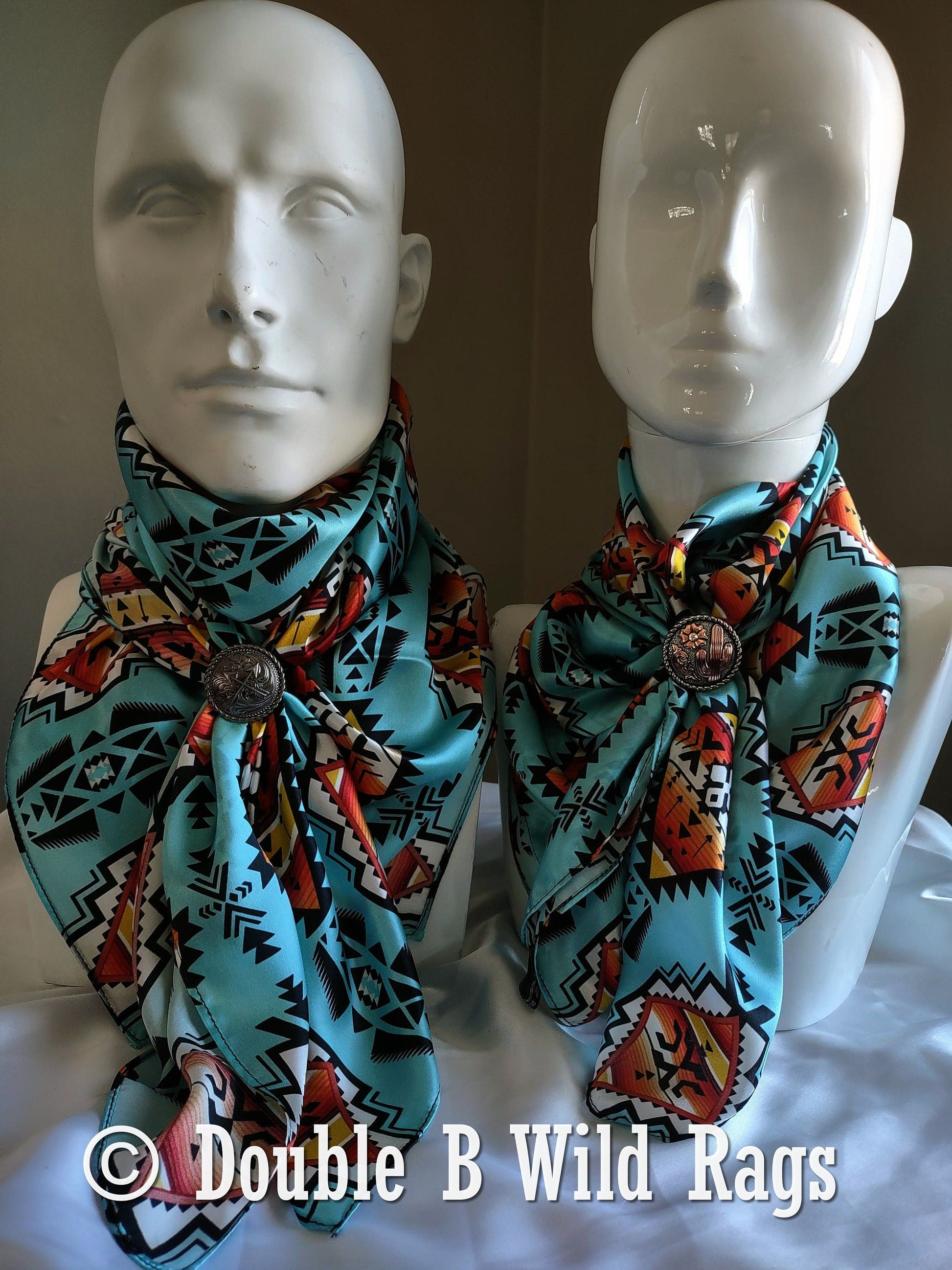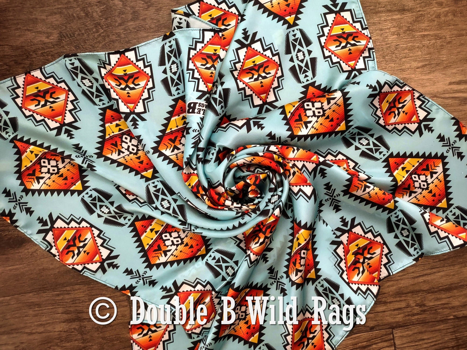 Wild Rag 100% Silk Light Blue with Orange Serape Cowboy Western Neck Scarf Bandanna by Double B Wild Rags