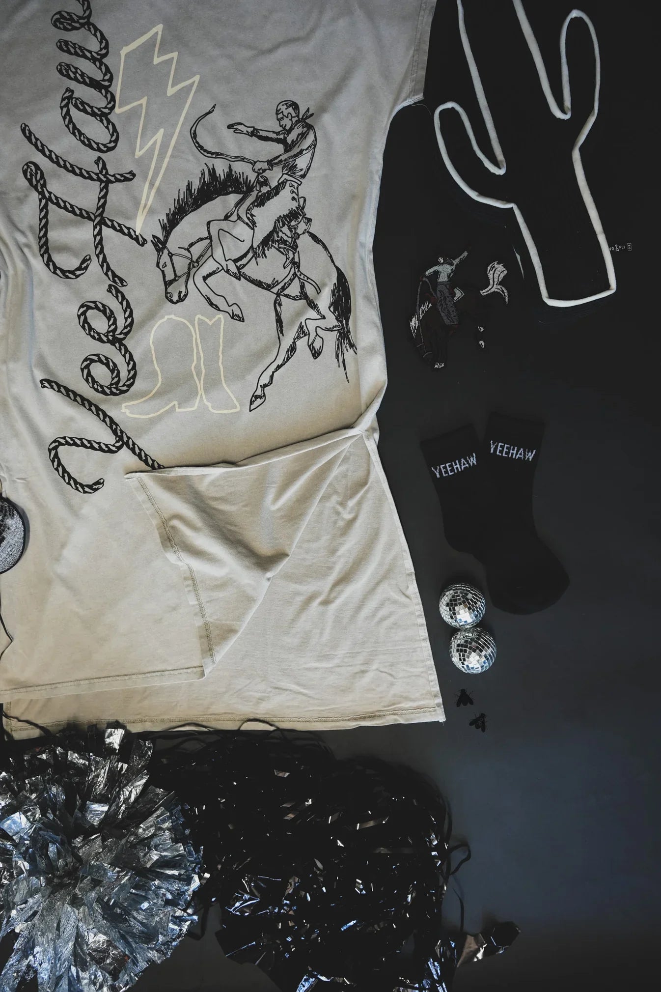 i think YEEHAW is our favorite word currently && lightning bolts are still a vibe.